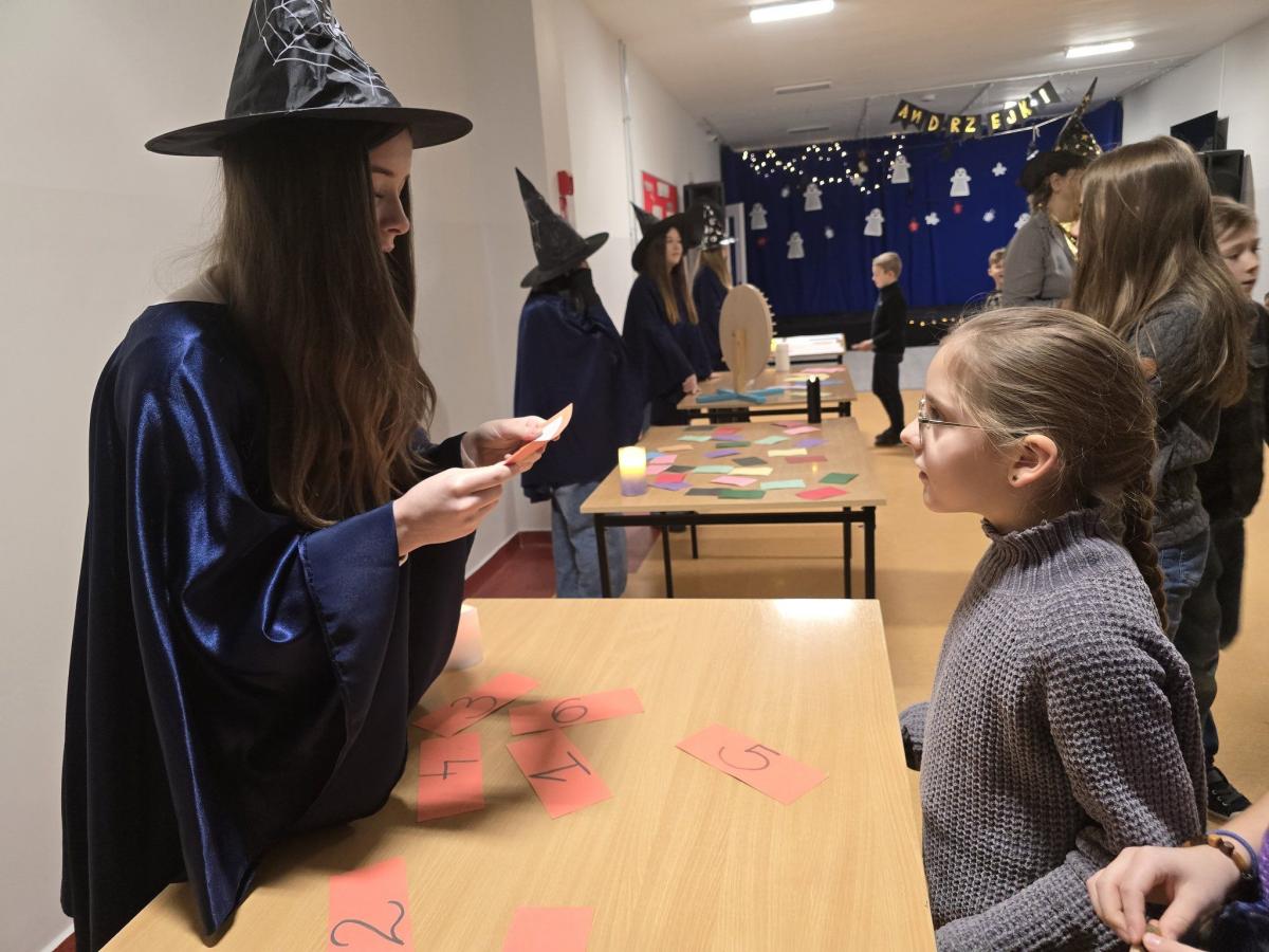 Uczennice z klas 7 i 8 wcieliły się w role przyjaznych czarownic- wróżek i w formie zabawy przepowiadały dzieciom przyszłość.
