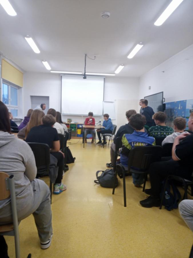 W części o charakterze warsztatowym ósmoklasiści mieli okazję wziąć udział na żywo w nagraniu radiowym.