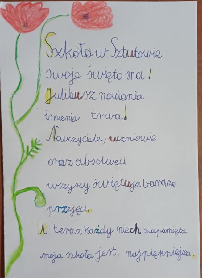 Z okazji 40. rocznicy nadania szkole imienia oraz rozpoczęcia nauki w budynku, który do dzisiaj służy uczniom, ogłoszono konkurs na zaprojektowanie okładki zeszytu oraz dedykacji/ życzeń dla szkoły.