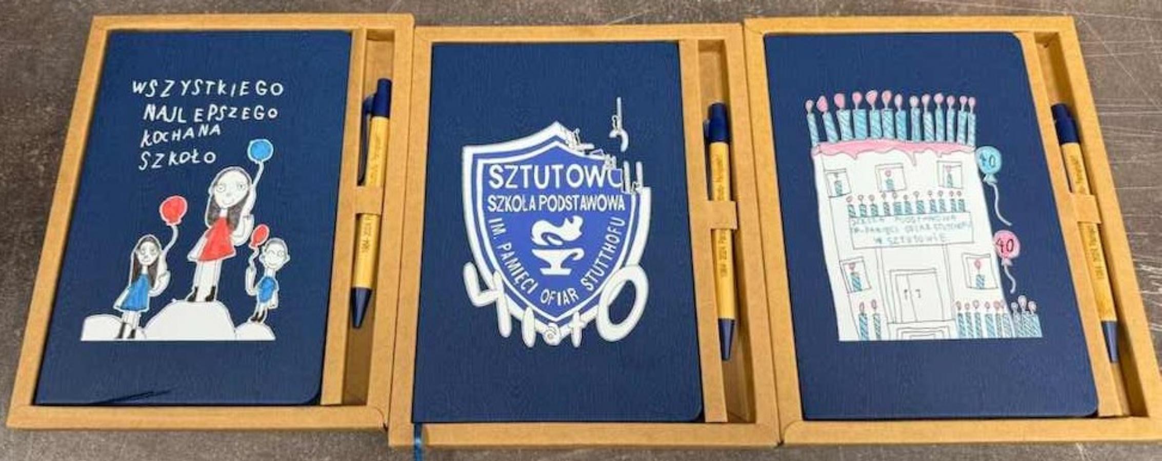 „Społeczność Szkoły Podstawowej im. Pamięci Ofiar Stutthofu w Sztutowie wyraża wdzięczność Pani Aleksandrze Gus- Puszczewicz- Przewodniczącej Rady Rodziców.