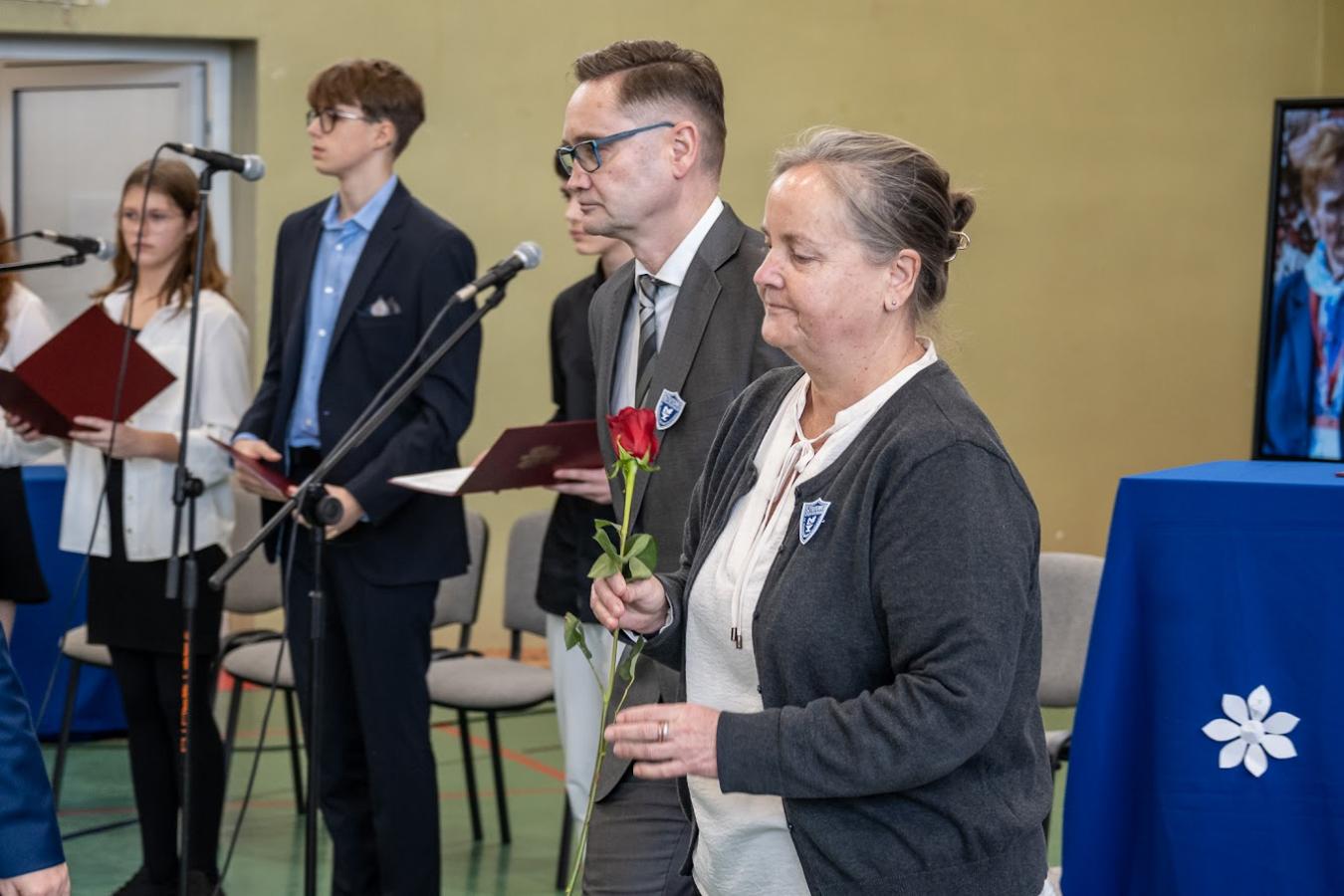 Nie zabrakło także kwiatów dla emerytowanych pracowników szkoły- wszystkich, którzy ją w przeszłości współtworzyli.