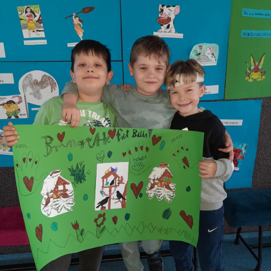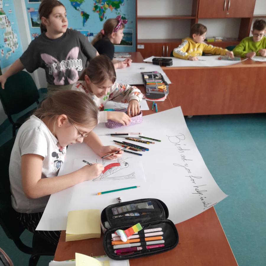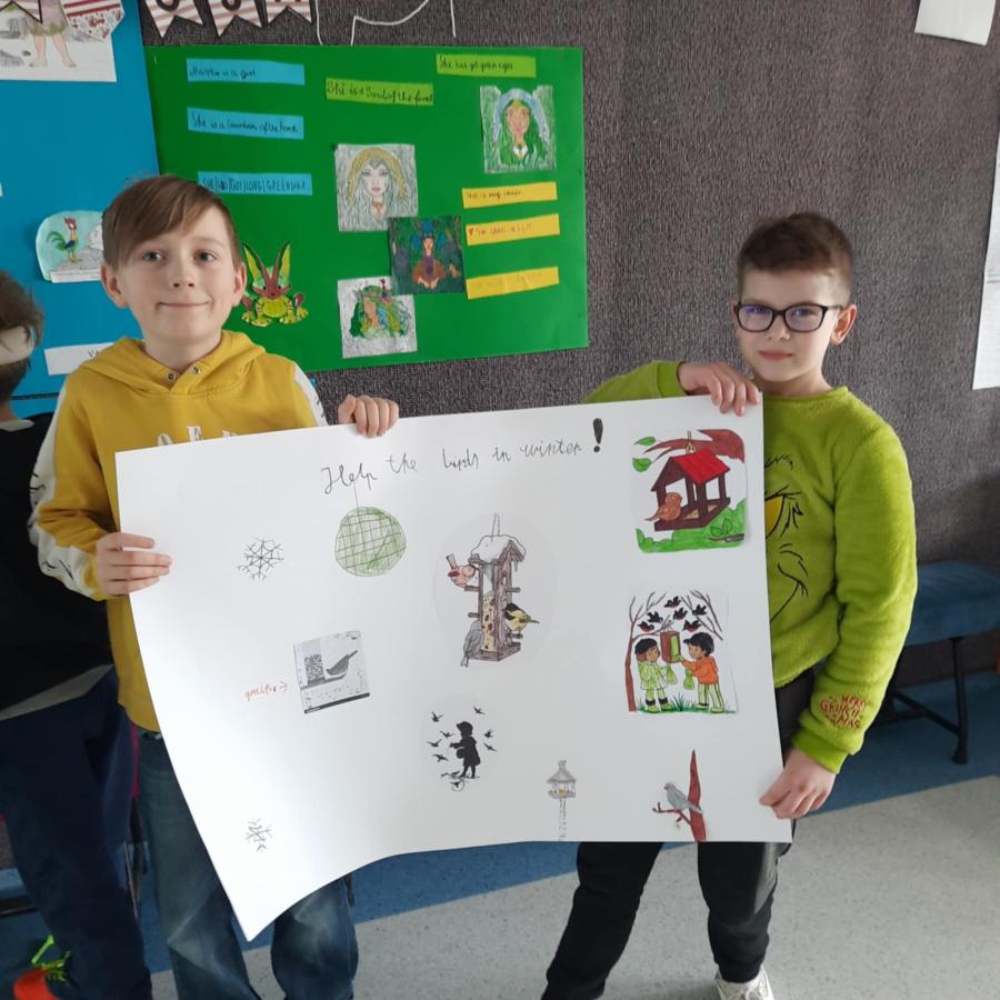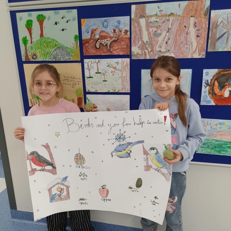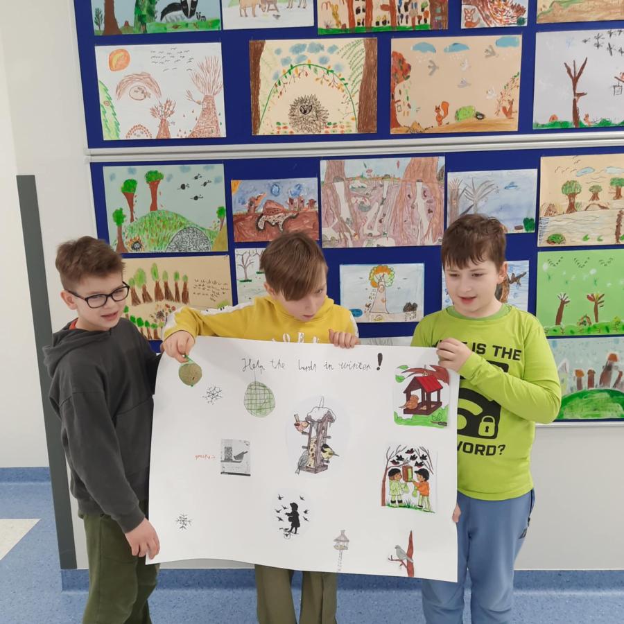 W lutym uczniowie klasy 3b zaangażowani w realizację projektu ekologicznego z języka angielskiego „Baltic Eco-Team. New Challenges!” zorganizowali wolontariat na rzecz zbiórki karmy dla ptaków.