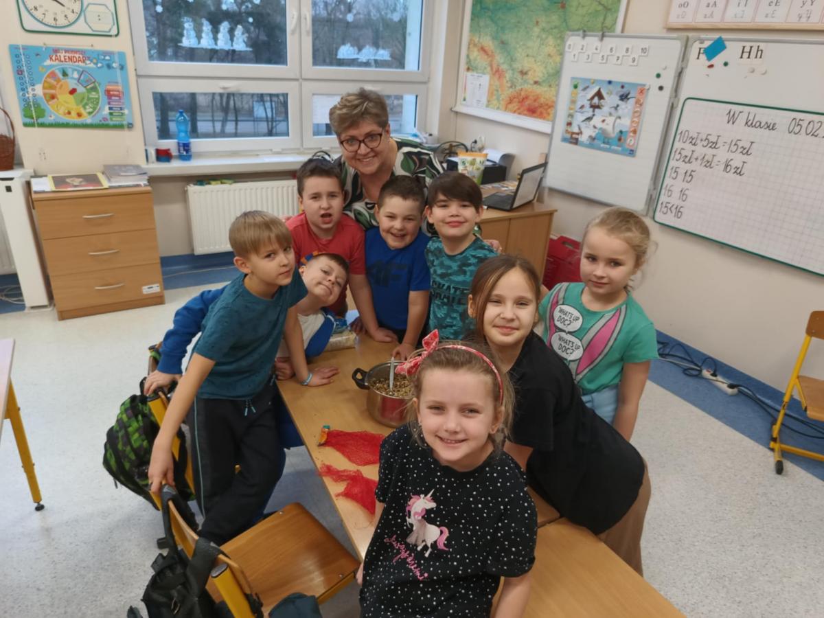 Do środy przyszłego tygodnia prowadzimy akcję i zapraszamy do udziału wszystkich chętnych: wystarczy przynieść jedną kulkę z tłuszczem i nasionami do klasy Pani Magdaleny Urbańskiej.