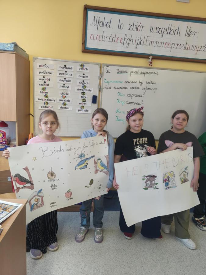 Uczniowie klasy 3b wykonali plakaty dotyczące zbiórki oraz zachęcające do dokarmiania ptaków zimą oraz odwiedzili kolegów z klas I-III, zachęcając do wzięcia udziału w naszej akcji. Efekty już są!