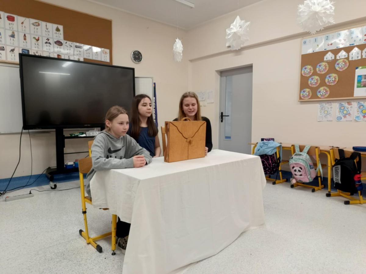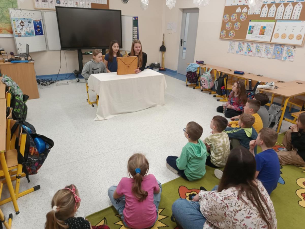 Zaprosiliśmy uczniów klasy 6b z wychowawcą, aby mogli uczestniczyć w naszej inscenizacji nie tylko jako widzowie, ale także aktorzy.