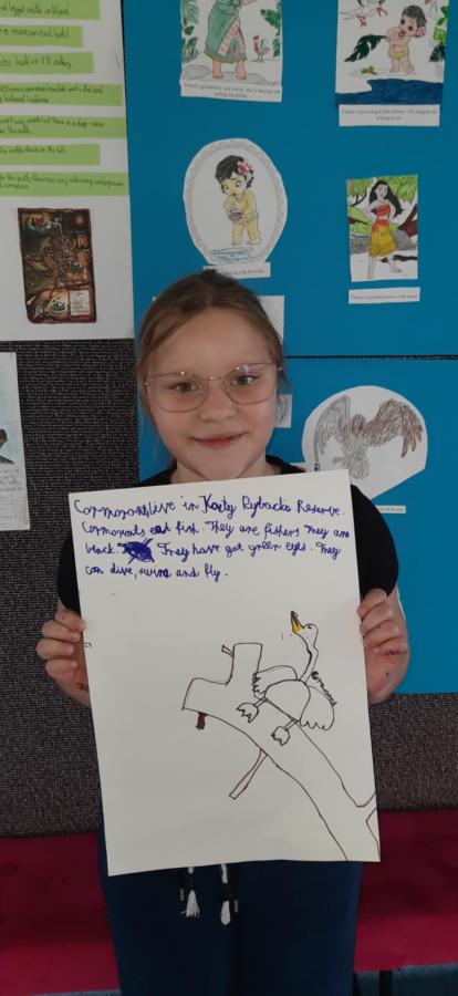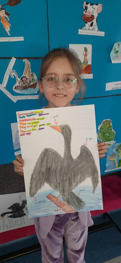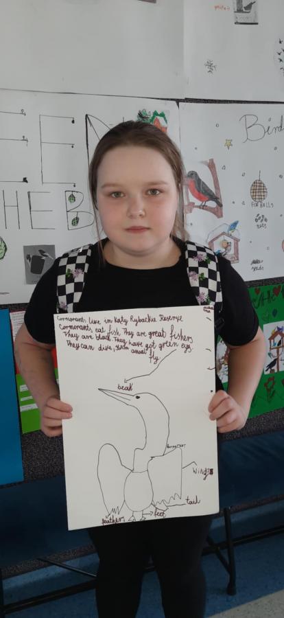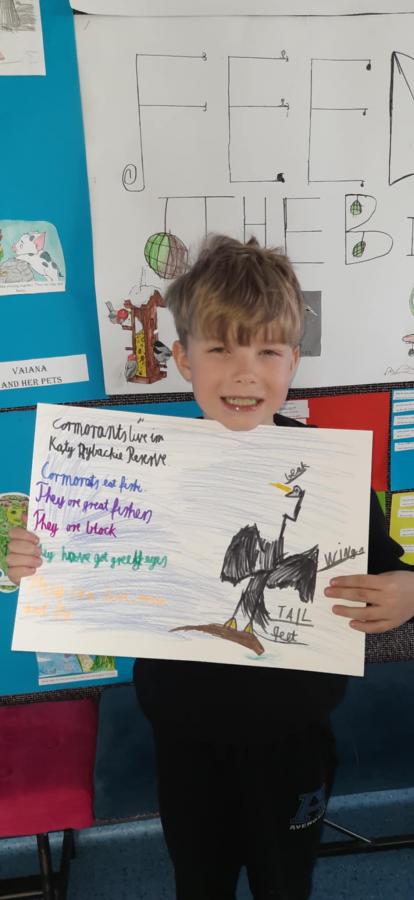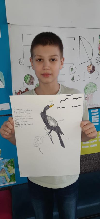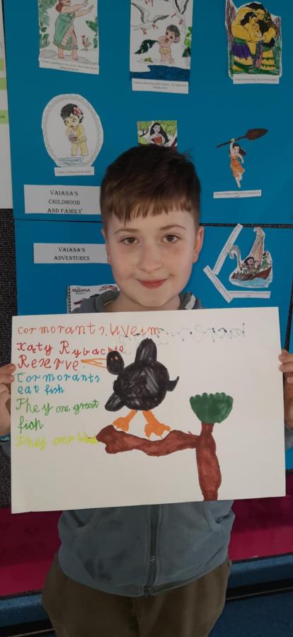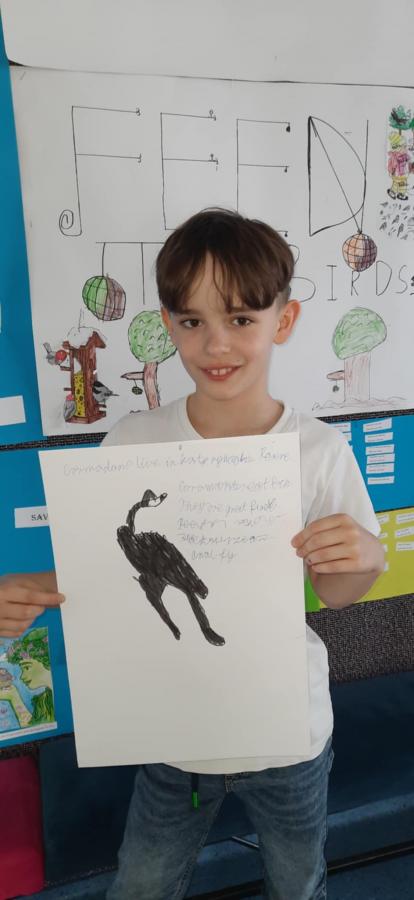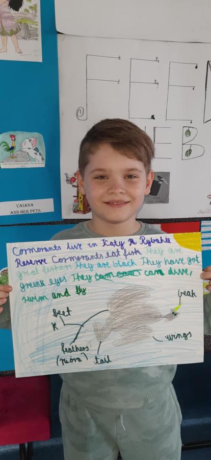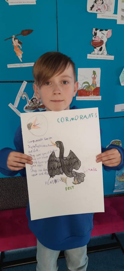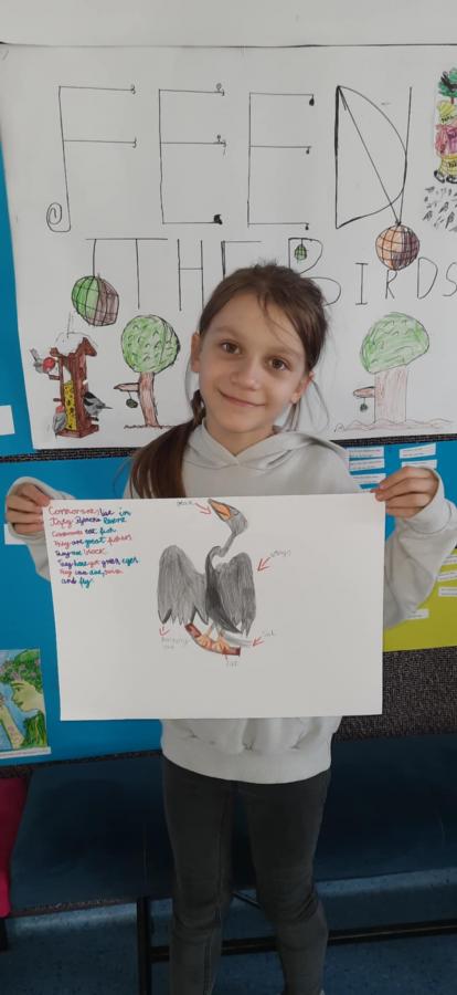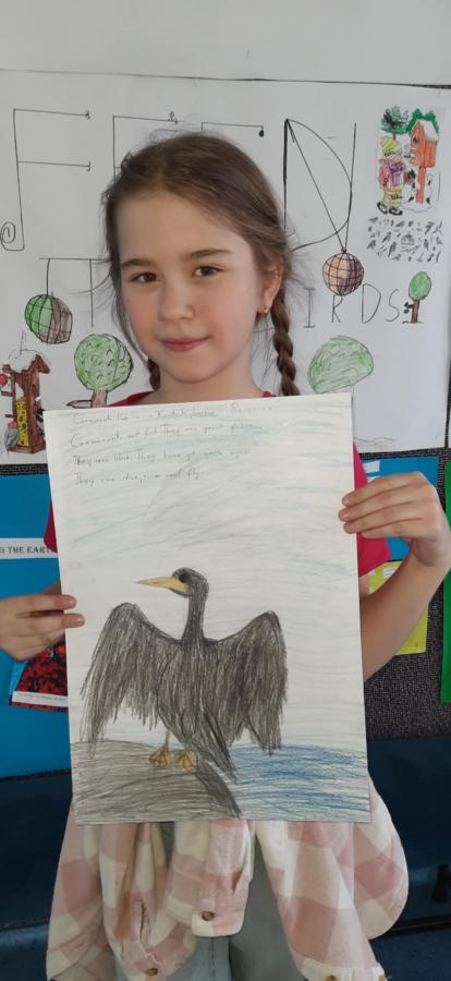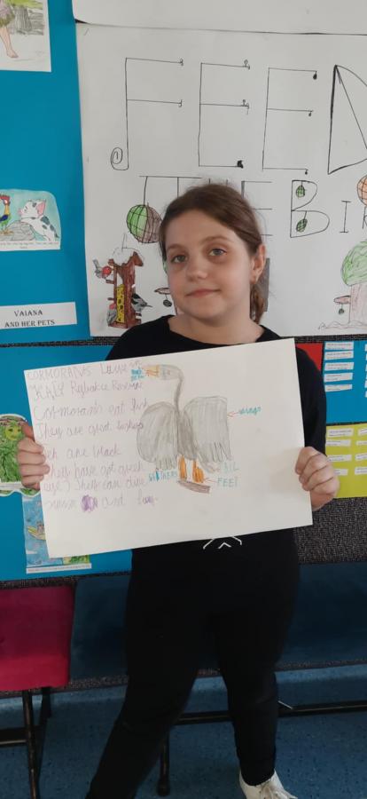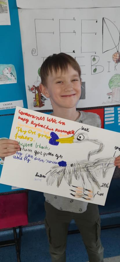 Uczniowie wykonali piękne plakaty o kormoranach, opisali ptaka w języku angielskim i pięknie zaprezentowali swoje prace.
