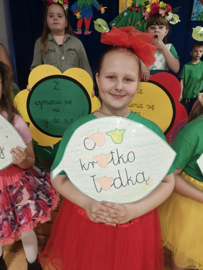 Zielone stroje uczniów dodały klimatu, a wiersz „Szybko” skłonił wszystkich do refleksji – czy naprawdę w życiu trzeba zawsze pędzić? Dzieci zdecydowanie wolą cieszyć się chwilą!