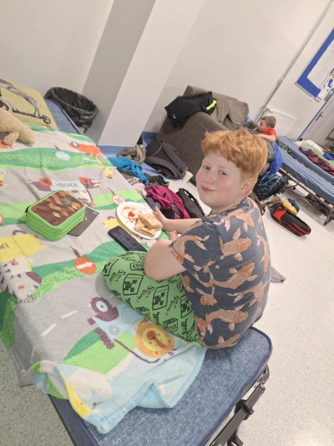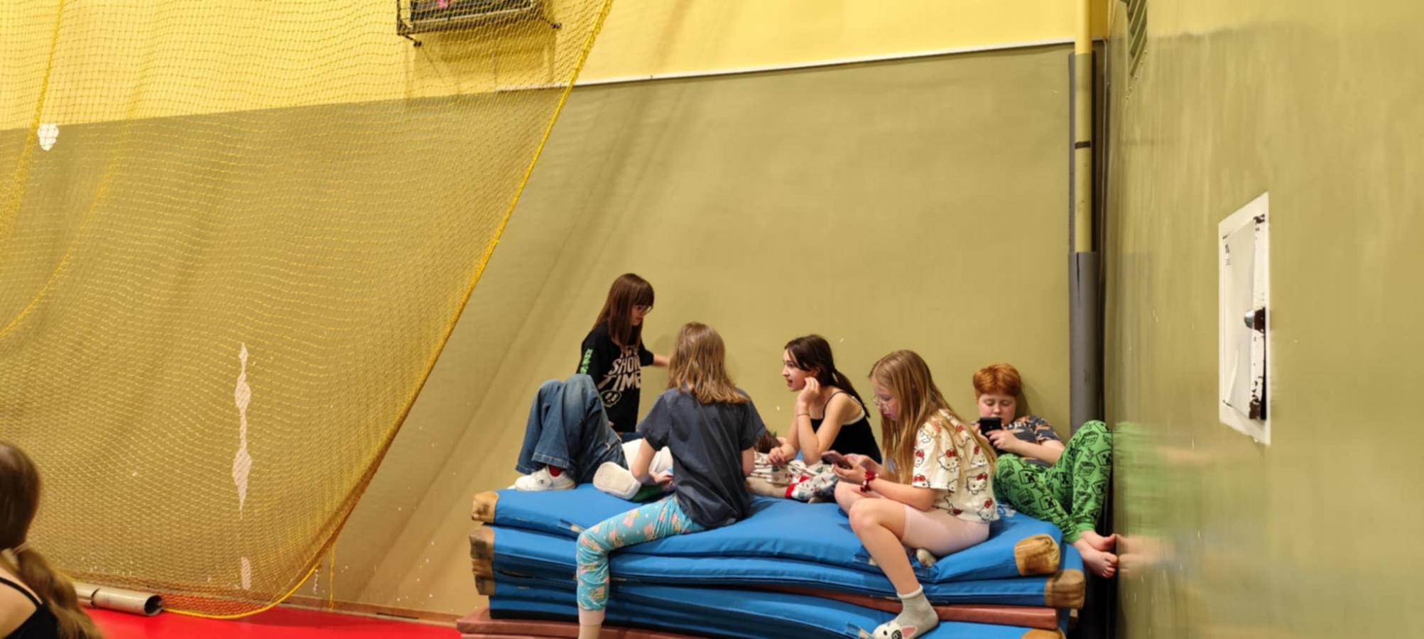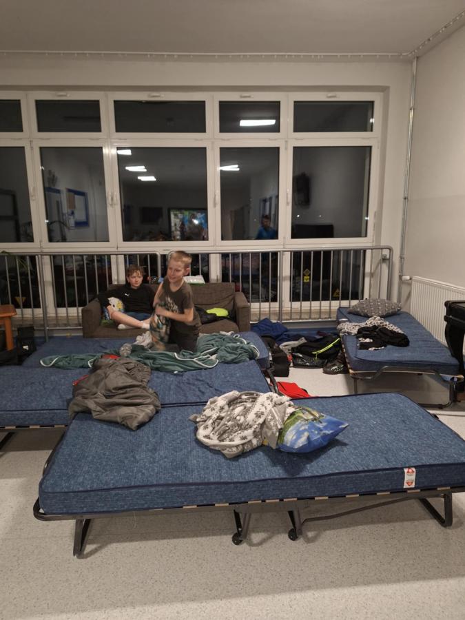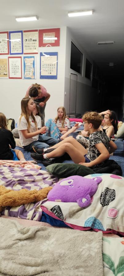 Najpierw rozwijaliśmy supermoce społeczne z ekspertkami Panią Moniką i Eweliną (dziękujemy), potem rozłożyliśmy łóżka polowe, śpiwory, przygotowaliśmy strefę odpoczynku i… zaczęła się nocna przygoda!