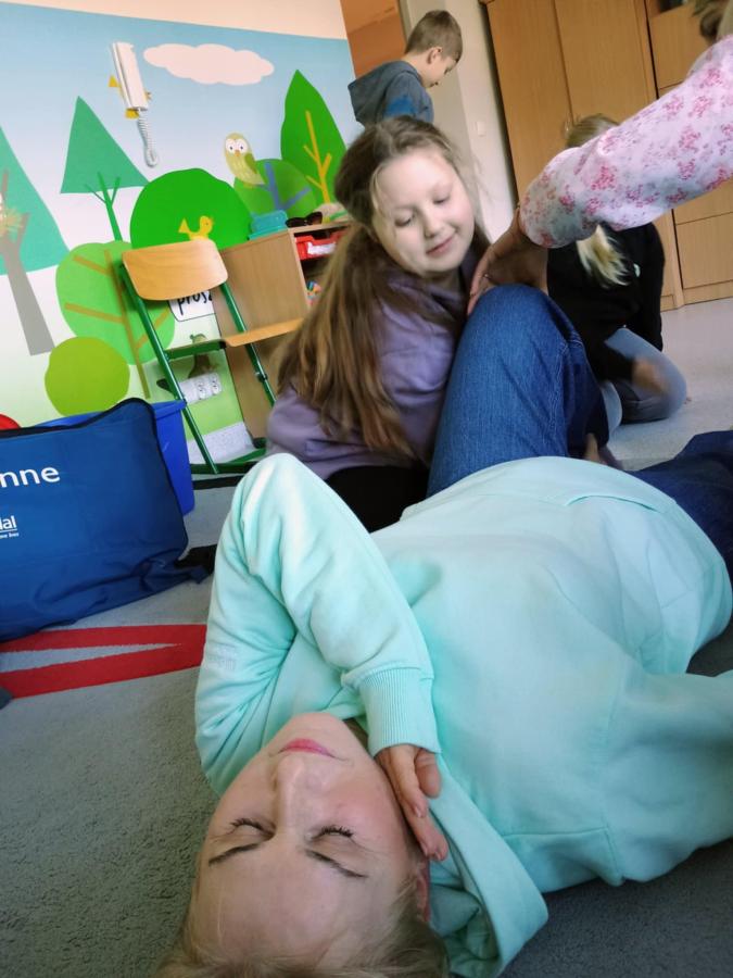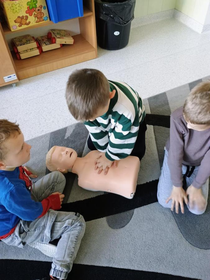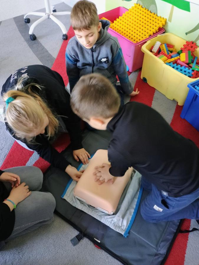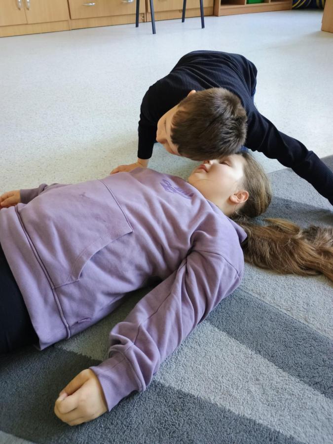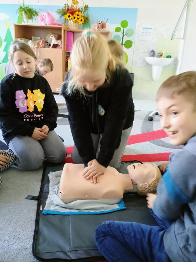Wiedzą już, że gdy poszkodowany oddycha, układamy go w pozycji bocznej bezpiecznej, jeśli nie oddycha wykonujemy 30 ucisków klatki piersiowej.
