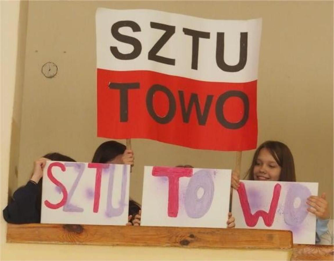 Dziewczętom pomagał również klub kibica z naszej szkoły bardzo dobrze przygotowany (transparenty, hasła, przyśpiewki) za co serdecznie dziękujemy