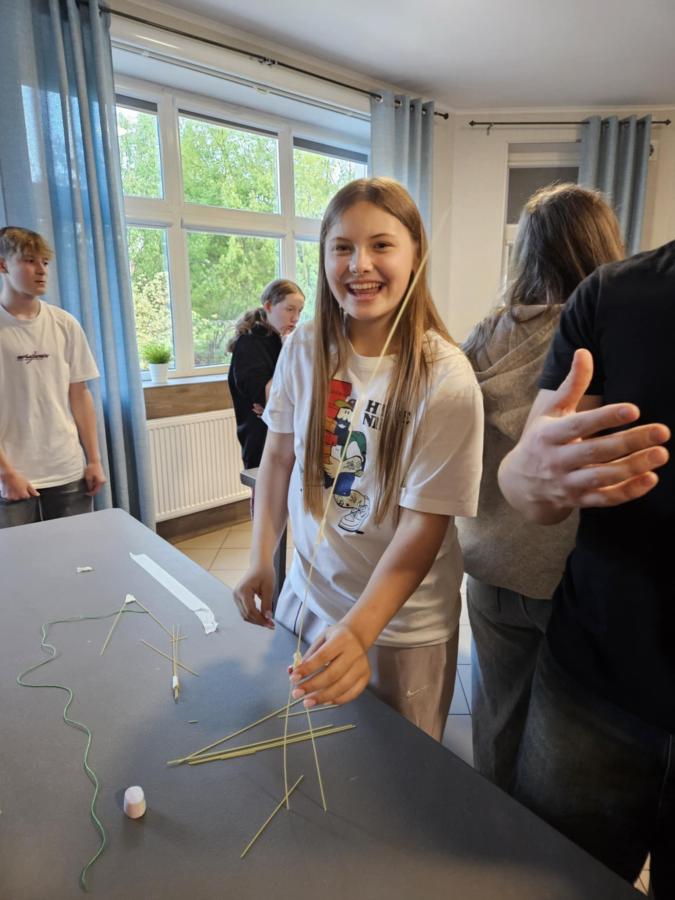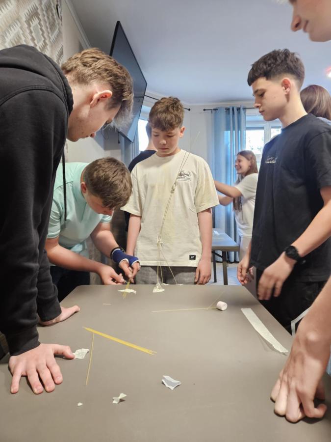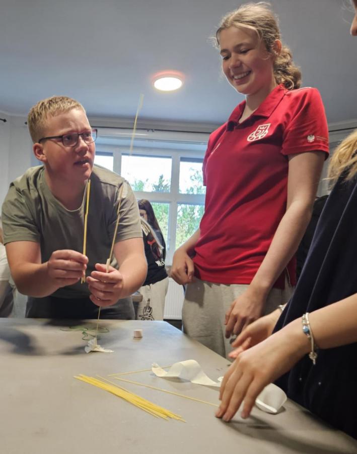 W trakcie zajęć uczestnicy mierzyli się z inżynierskimi wyzwaniami, konstruując m.in. model skrzydła samolotu, papierowy głośnik oraz lewitujący stół! Wspólna praca sprzyjała nie tylko nauce, ale też rozwojowi umiejętności współpracy, logicznego myślenia i kreatywności. Młodzież wykazała się ogromnym zaangażowaniem, pomysłowością i sprytem.