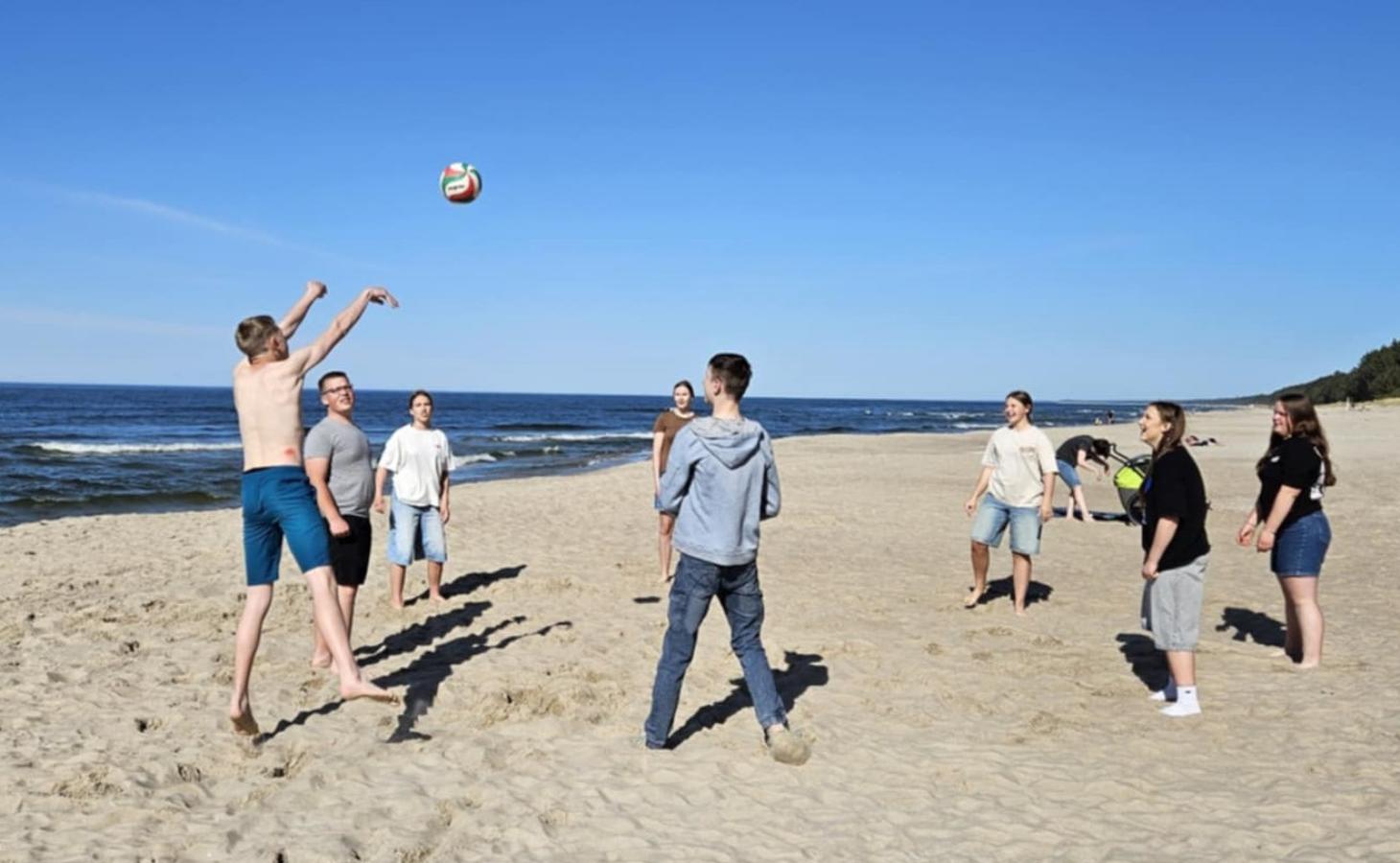 Popołudnie spędziliśmy na plaży, gdzie podczas wspólnej zabawy i gry w piłkę uczestnicy mieli okazję lepiej się poznać i podzielić wrażeniami z całego dnia.