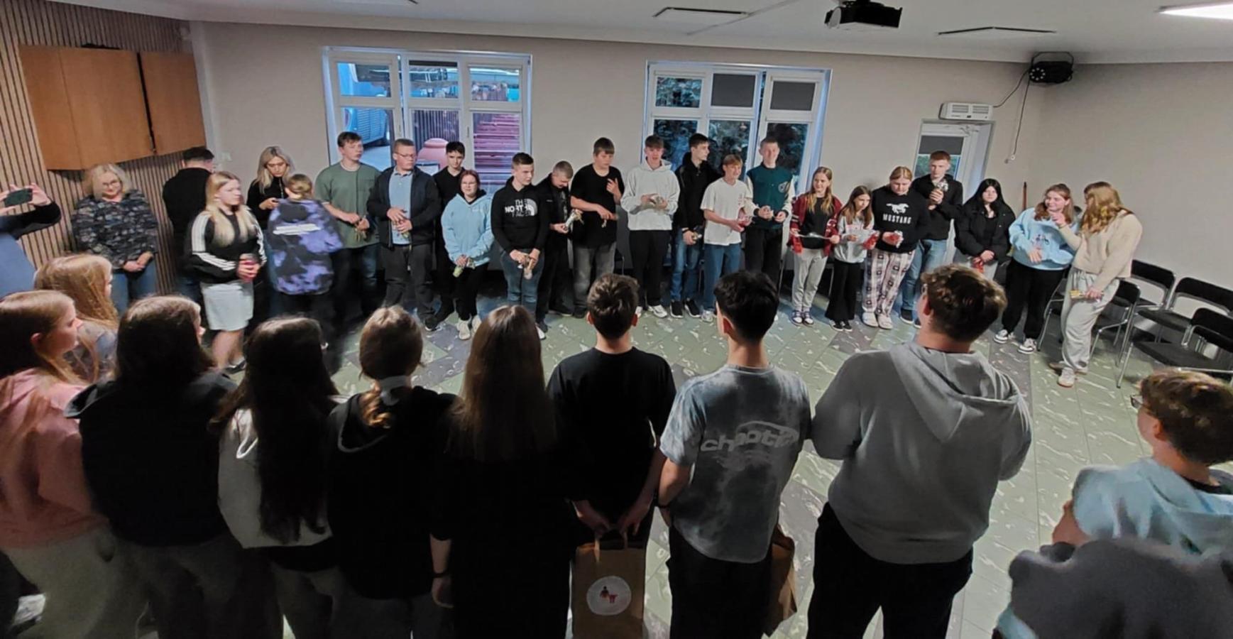 Wieczorem, w atmosferze radości i entuzjazmu, odbyła się dyskoteka integracyjna, podczas której uczniowie bawili się przy największych polskich i niemieckich hitach. Muzyka, taniec i wspólna zabawa pozwoliły jeszcze bardziej zacieśnić polsko-niemieckie relacje.