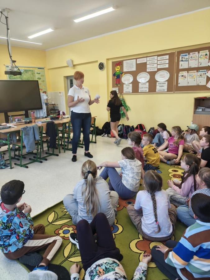 Zajęcia dotyczyły dwóch obszarów: higieny osobistej i zdrowego jedzenia oraz bezpiecznej zabawy na terenie wiejskim.