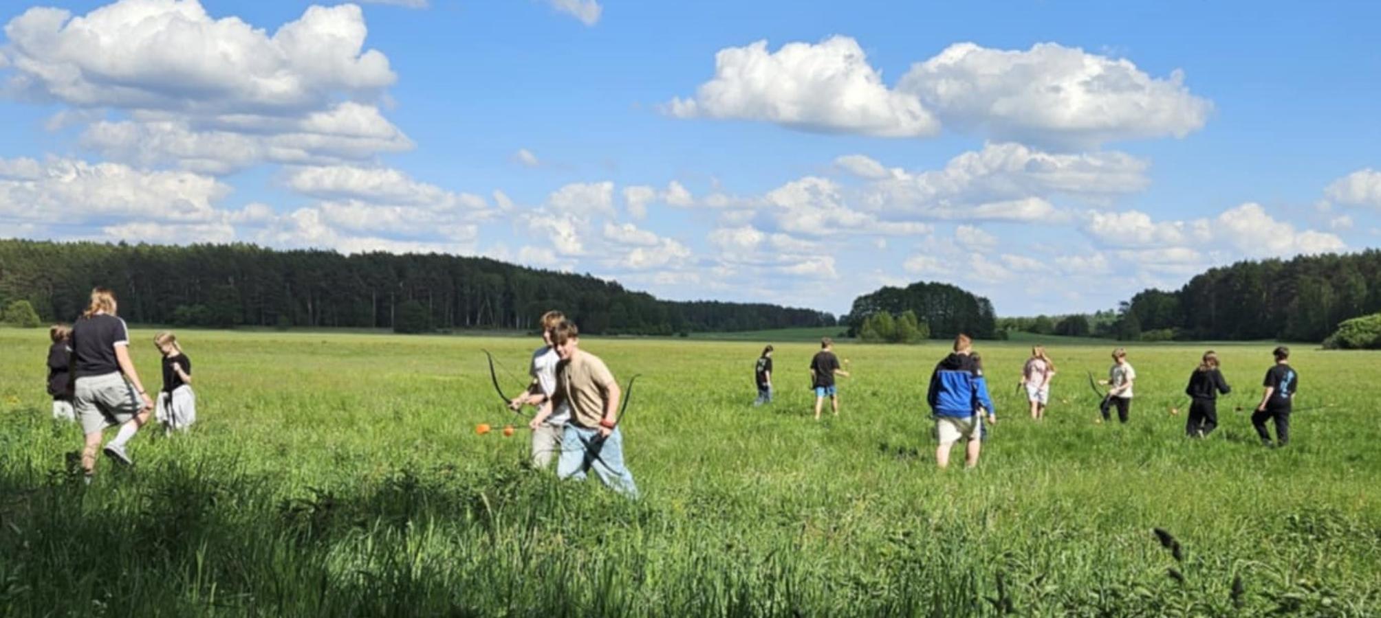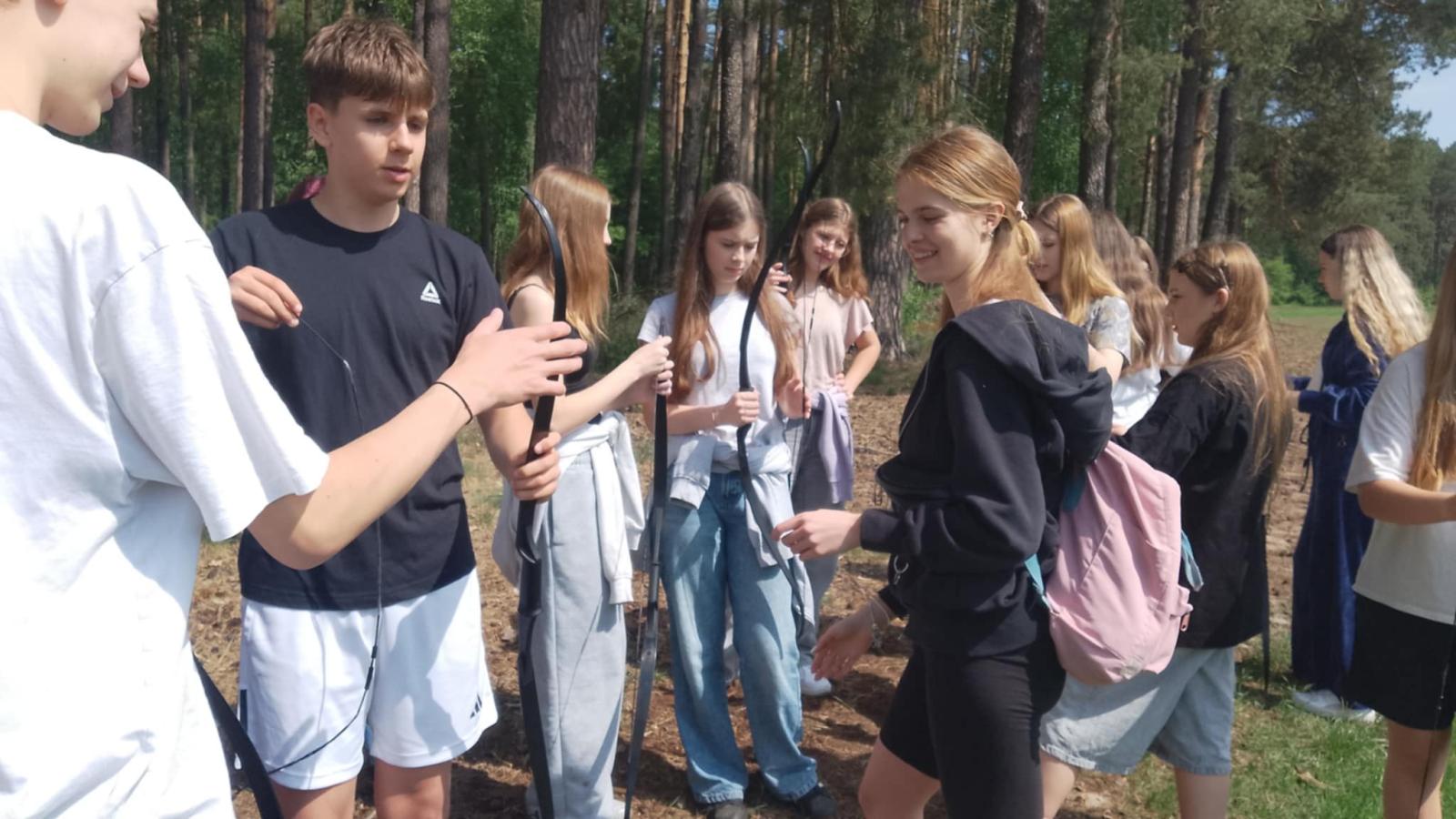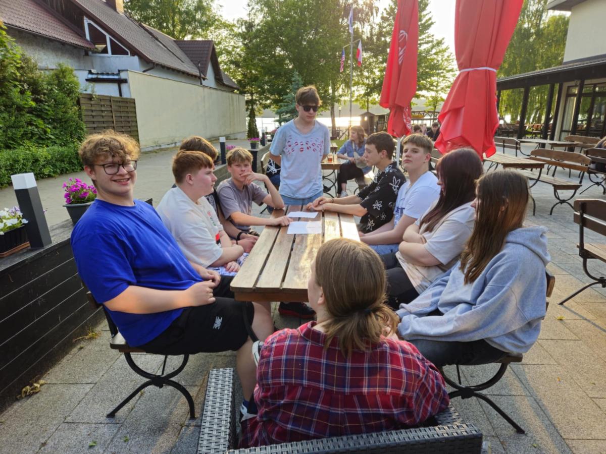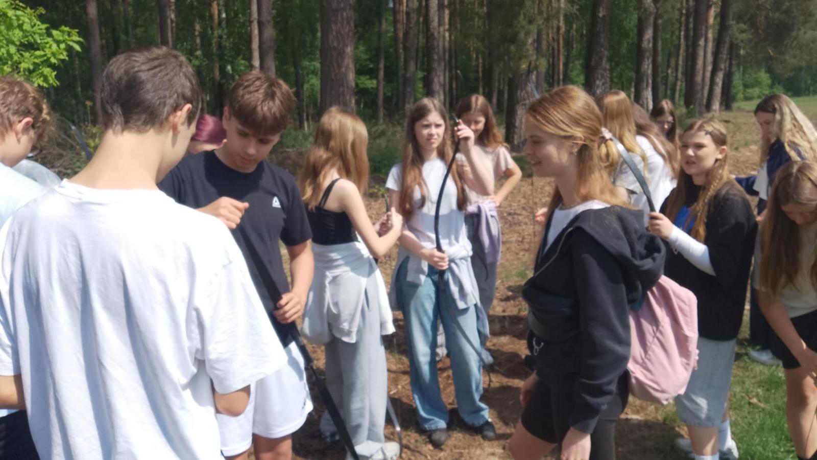 Nasi uczniowie mieli okazję spróbować swoich sił w pływaniu na pontonach, przejażdżkach rowerowych wzdłuż malowniczej linii brzegowej jeziora oraz w strzelaniu z łuku. Po intensywnym dniu pełnym wrażeń, wszyscy wspólnie zasiedliśmy przy ognisku, gdzie piekliśmy kiełbaski i dzieliliśmy się wrażeniami z dnia.