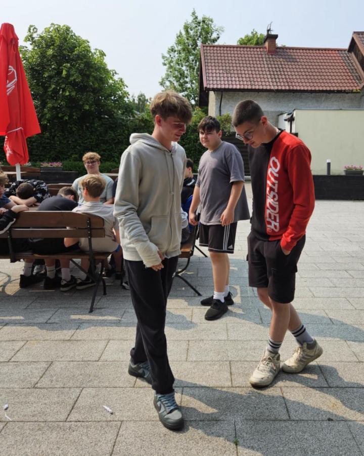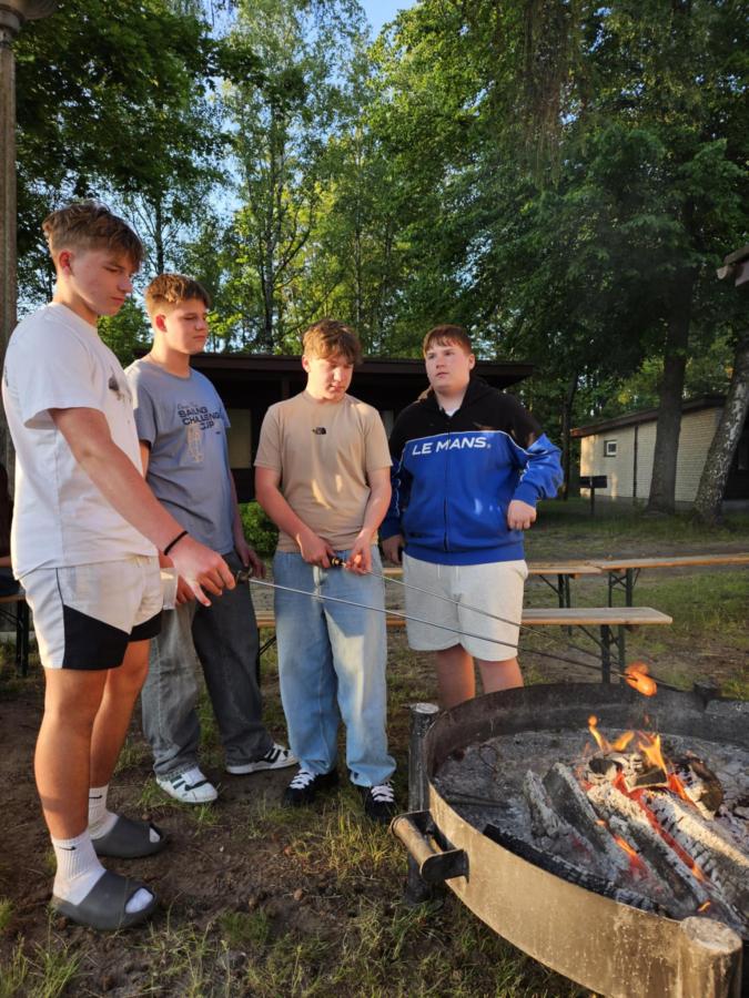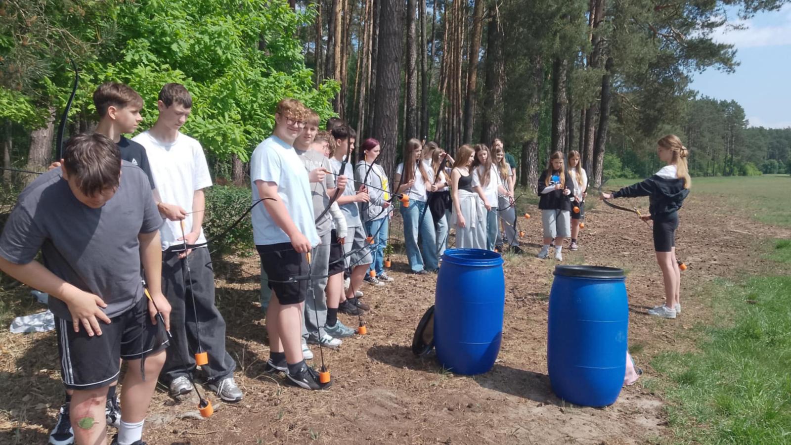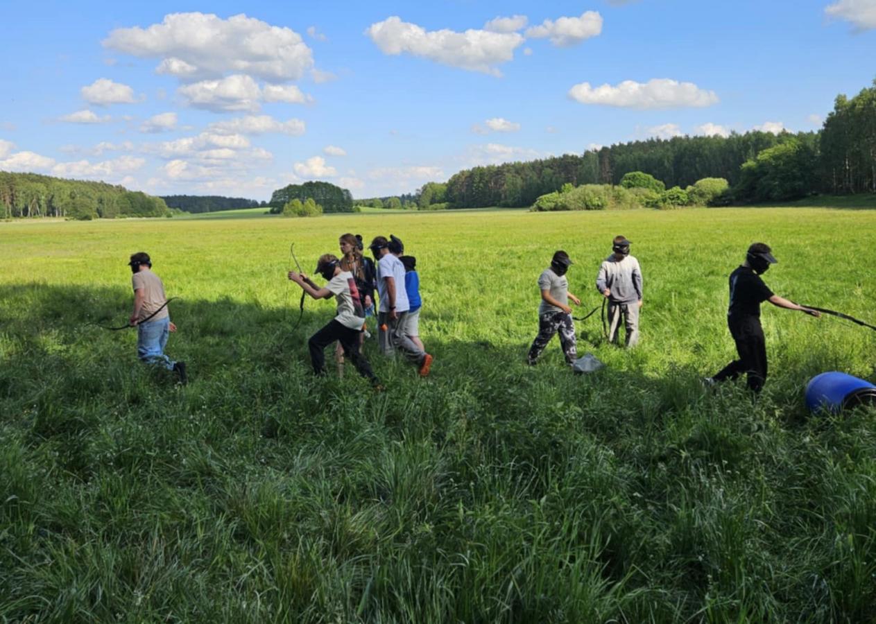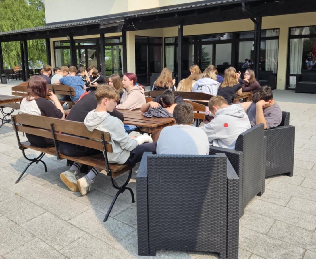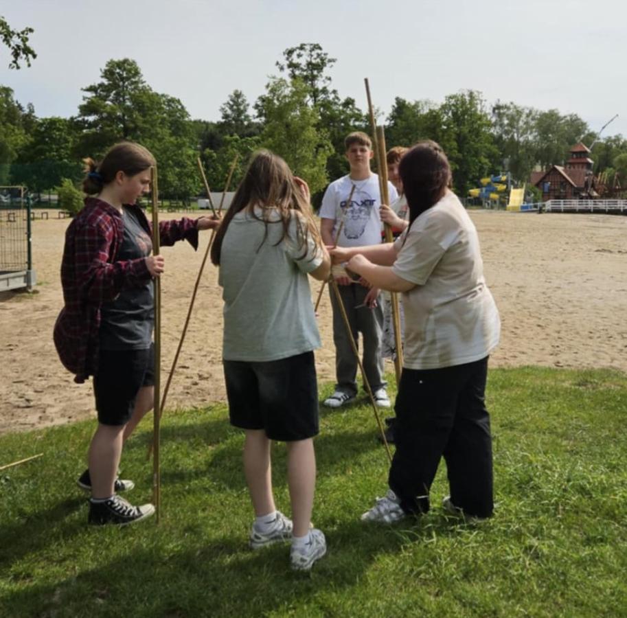 Nasi uczniowie mieli okazję spróbować swoich sił w pływaniu na pontonach, przejażdżkach rowerowych wzdłuż malowniczej linii brzegowej jeziora oraz w strzelaniu z łuku. Po intensywnym dniu pełnym wrażeń, wszyscy wspólnie zasiedliśmy przy ognisku, gdzie piekliśmy kiełbaski i dzieliliśmy się wrażeniami z dnia.