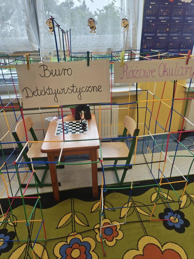 A gdzie Pozytywka bez swojego biura? Z klocków i patyczków powstała siedziba detektywistyczna „Różowe okulary” – z czajnikiem do herbaty i… bronią detektywa, czyli nieodłącznym kaktusem!