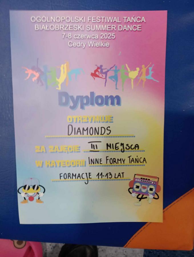 - Diamonds- III miejsce- w Ogólnopolskim Festiwalu Tańca „Białobrzeski Summer Dance” w czerwcu 2025 r.