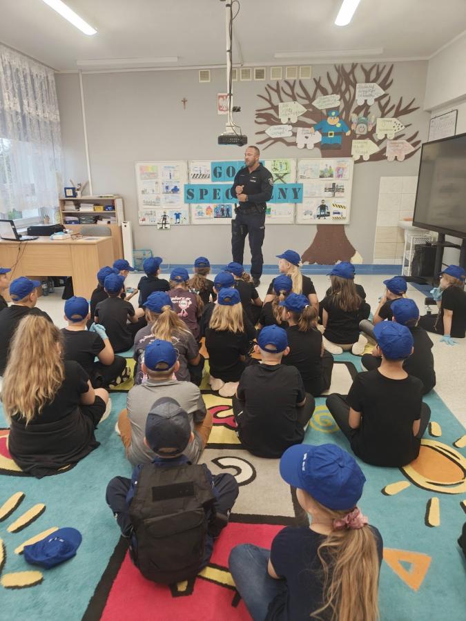 Dziś w ramach Międzynarodowego Projektu Latający Plecak Życzliwości gościliśmy pana policjanta Pawła Bellinga.