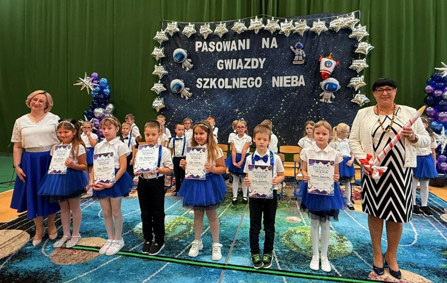 Całość przebiegła w radosnej, uroczystej atmosferze, a pierwszoklasiści udowodnili, że są gotowi do dalszej, szkolnej podróży po galaktyce wiedzy.