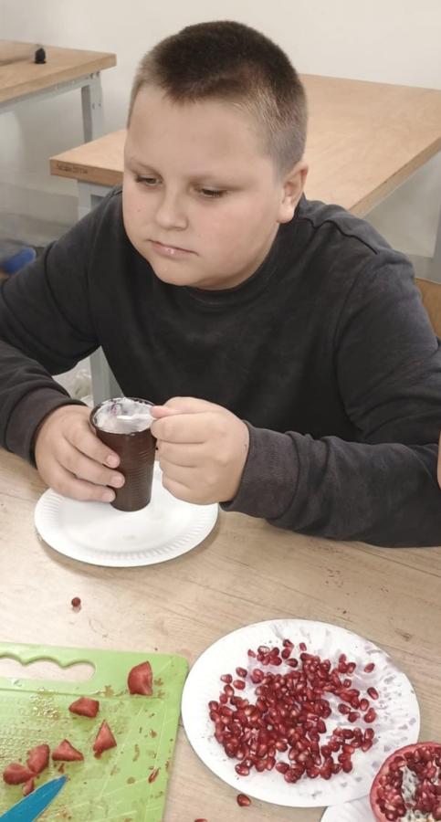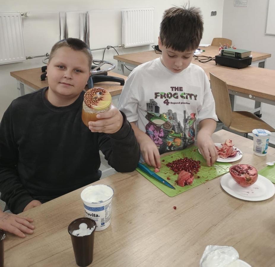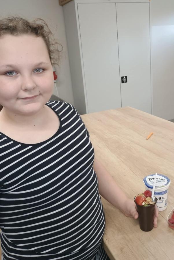 Dzieciaki wybrały przepis na jogurt naturalny z owocami, orzechami, miodem naturalnym, syropem klonowym i nasionami chia.