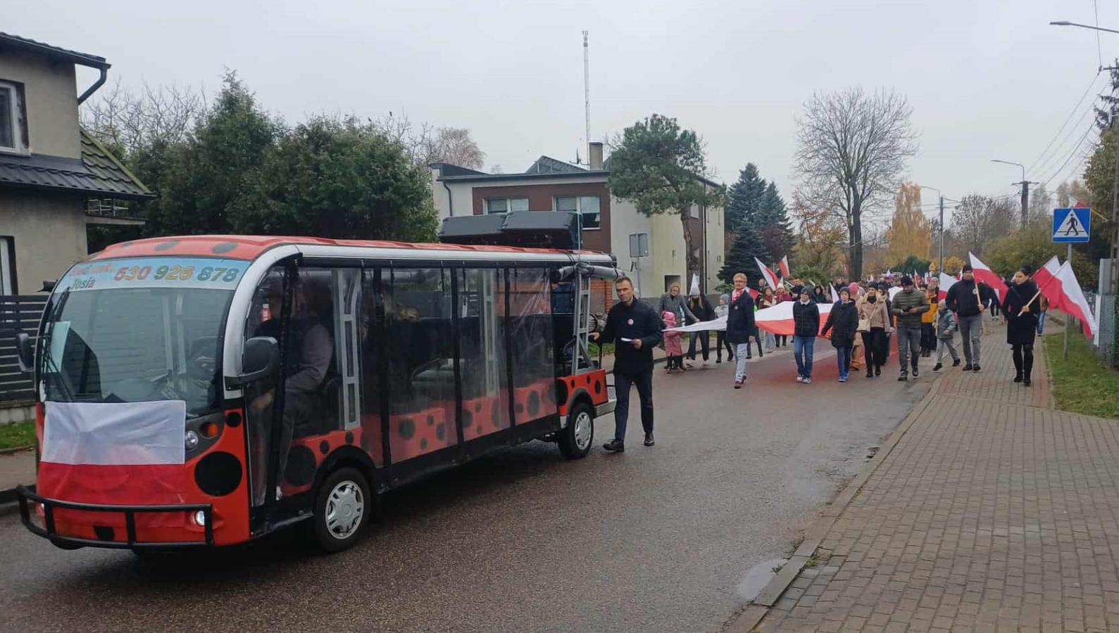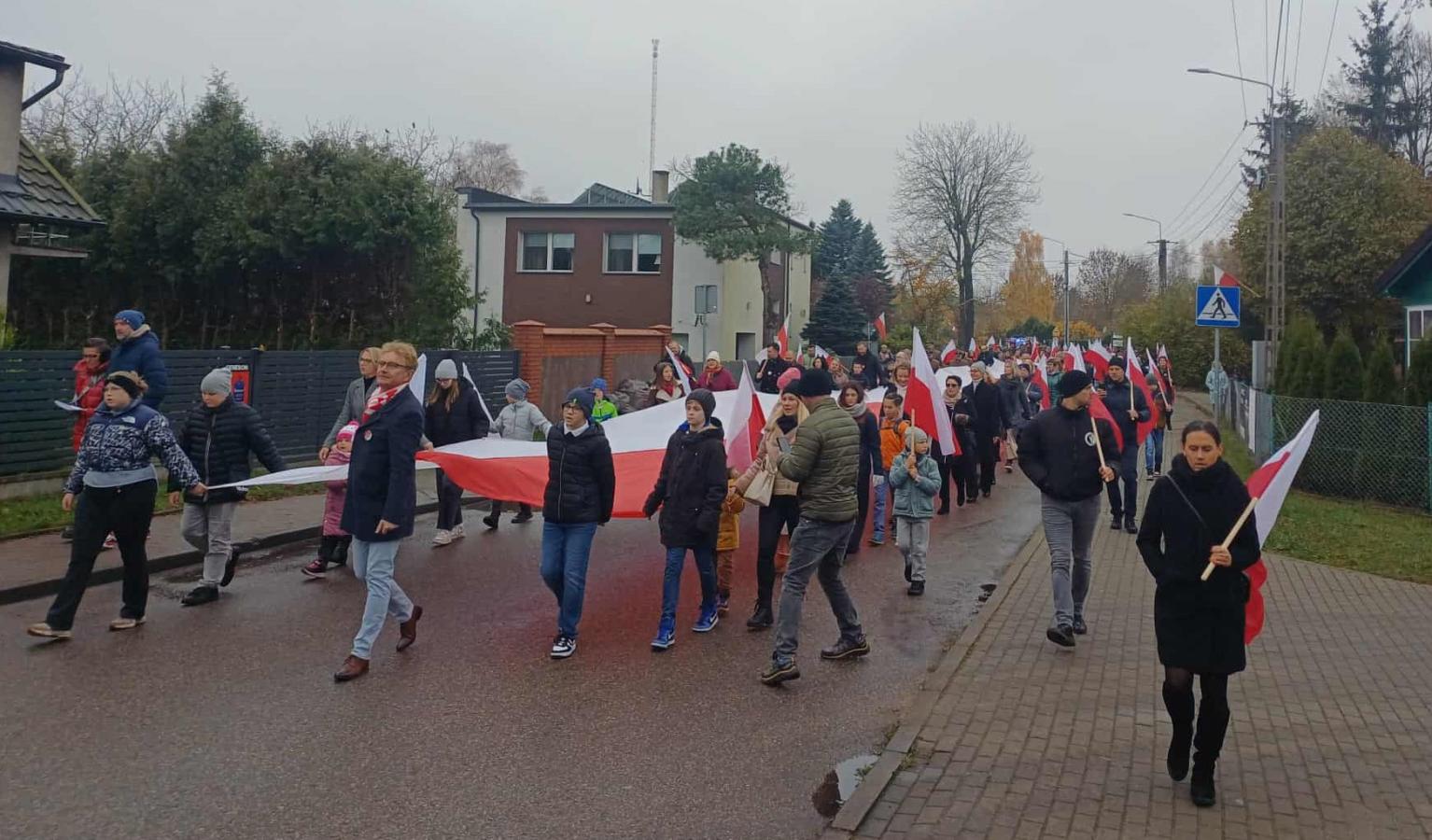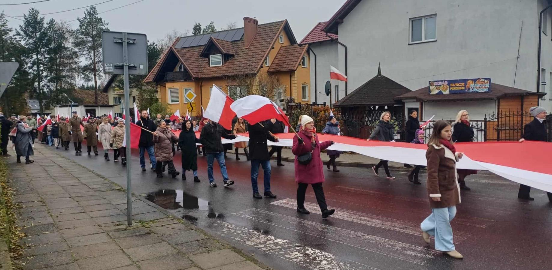 Poczet sztandarowy szkoły pięknie prezentował się podczas wszystkich wydarzeń obchodów, nasi uczniowie i pracownicy włączyli się w Marsz Niepodległości, lektorzy poprowadzili uroczystość patriotyczną, delegacja złożyła kwiaty.