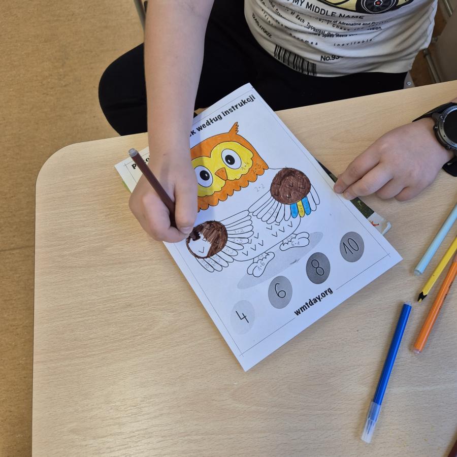 Młodsze dzieci rozwiązywały łamigłówki i kolorowały sowy.