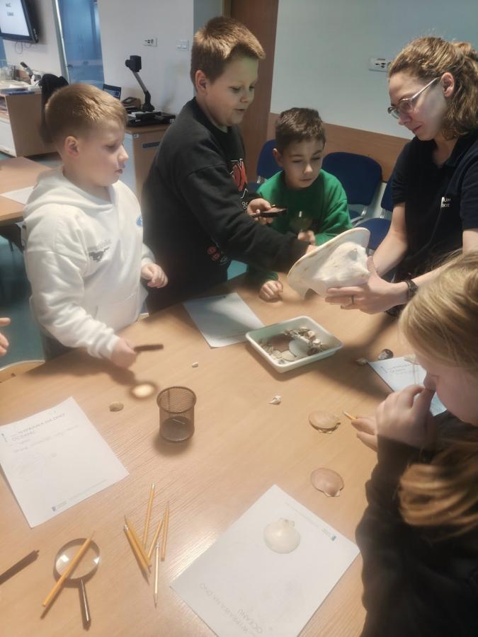 Najpierw wzięliśmy udział w warsztatach „Wyprawa na dno oceanów”, gdzie poznawaliśmy morskie stworzenia dzięki preparatom i „łupom” prosto z głębin.