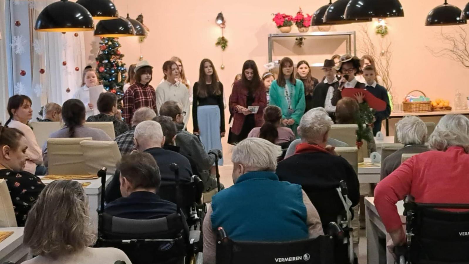 Uczniowie ze szkół w Stegnie i Sztutowie odwiedzili Dom Pomocy Społecznej MORS, prezentując mieszkańcom świąteczny program artystyczny.