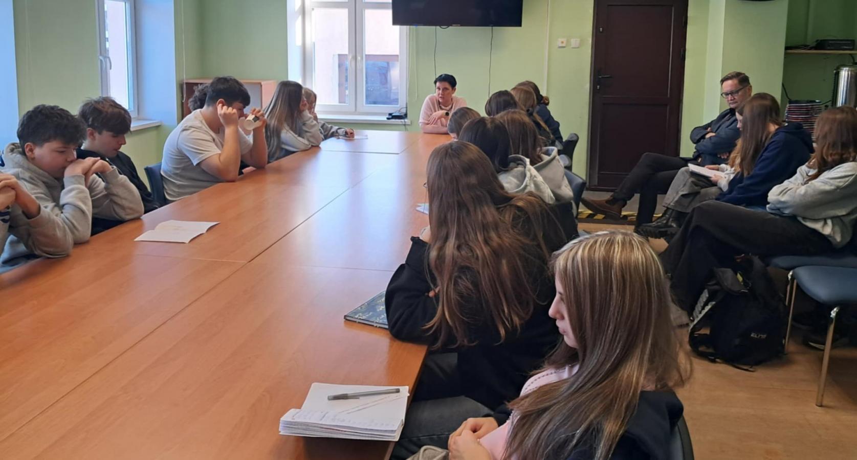Sekretarz Gminy precyzyjnie przedstawiła uczniom charakterystykę spraw, którymi zajmuje się gmina, zachęciła do pracy na jej rzecz, w przyszłości- być może właśnie w Urzędzie Gminy w Sztutowie.