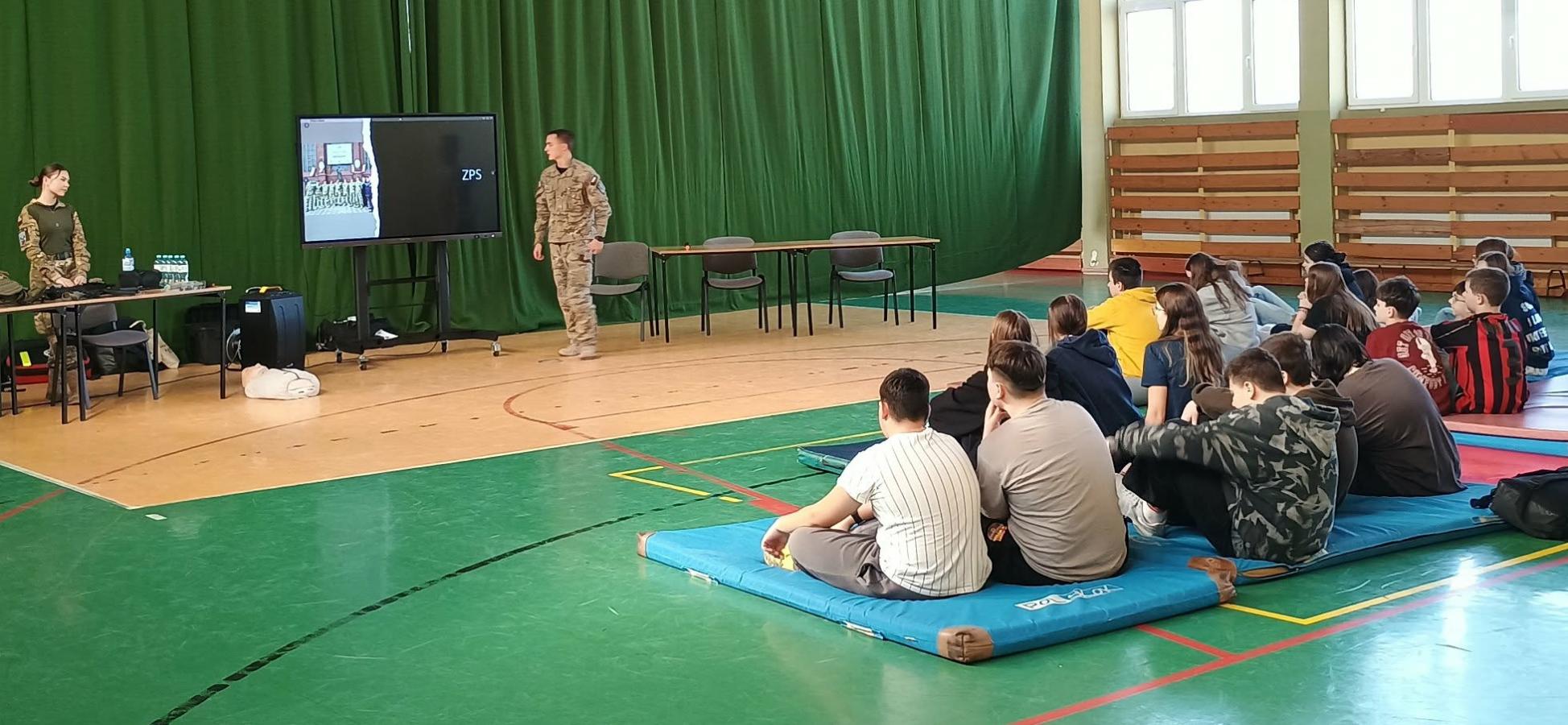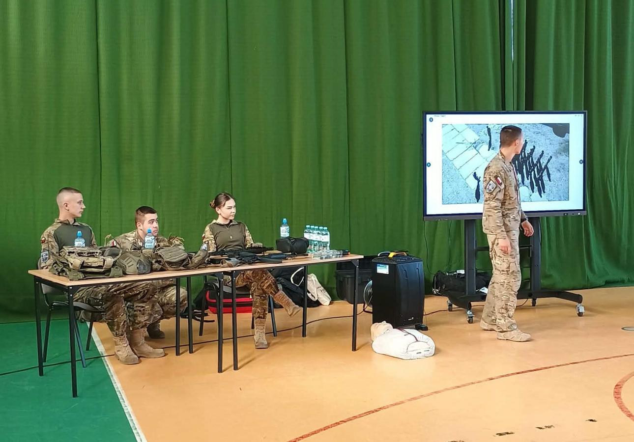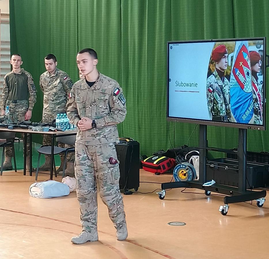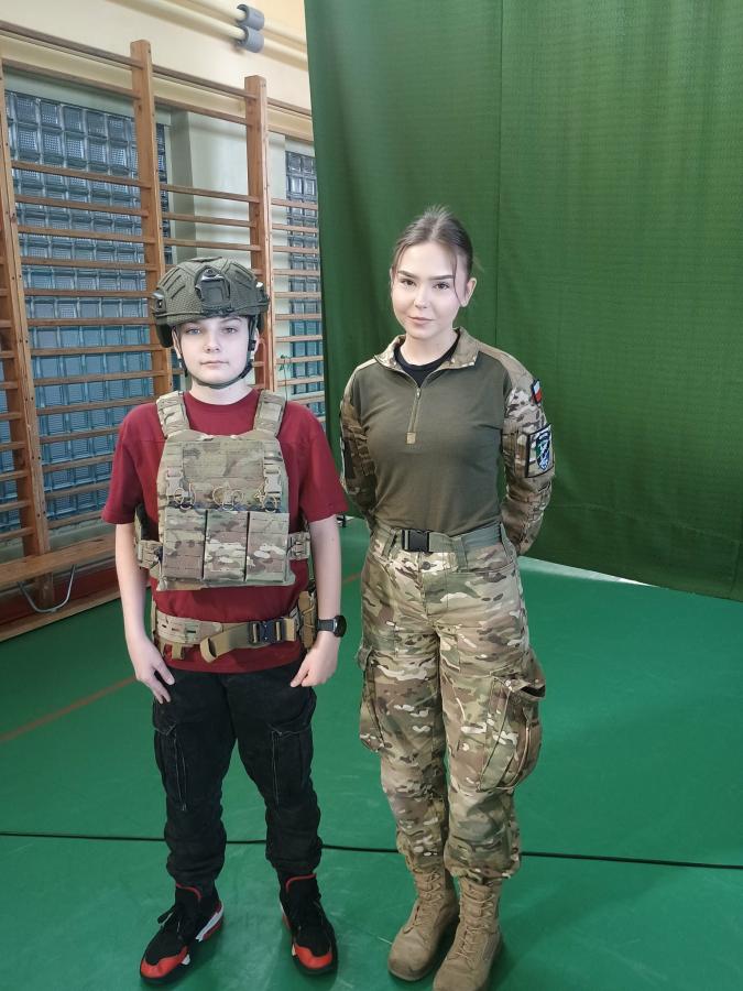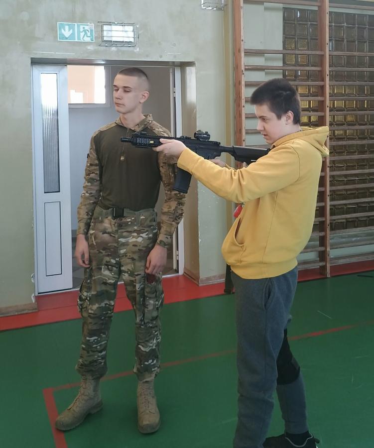 Uczniowie mieli możliwość przymierzenia kamizelek taktycznych, zobaczenia sprzętu szkoleniowego, a także spróbowania rozkładania broni i strzelania do tarcz treningowych.