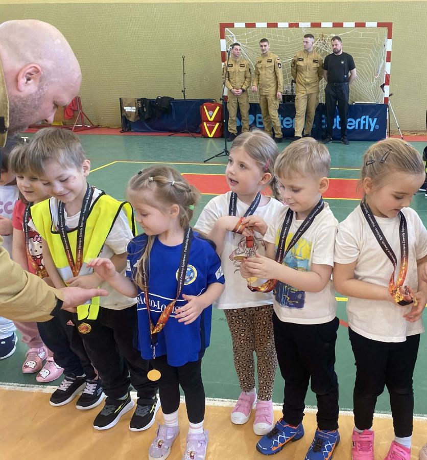Na zakończenie Mali Strażacy otrzymali pamiątkowe medale, a każde ze startujących przedszkoli zestaw gier edukacyjnych.