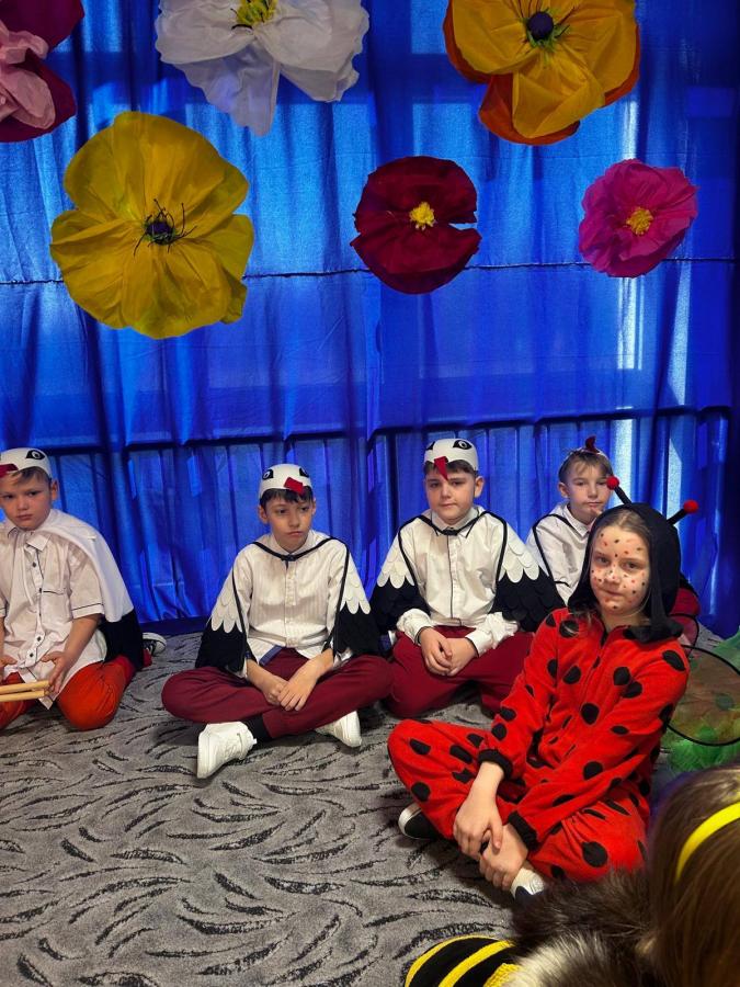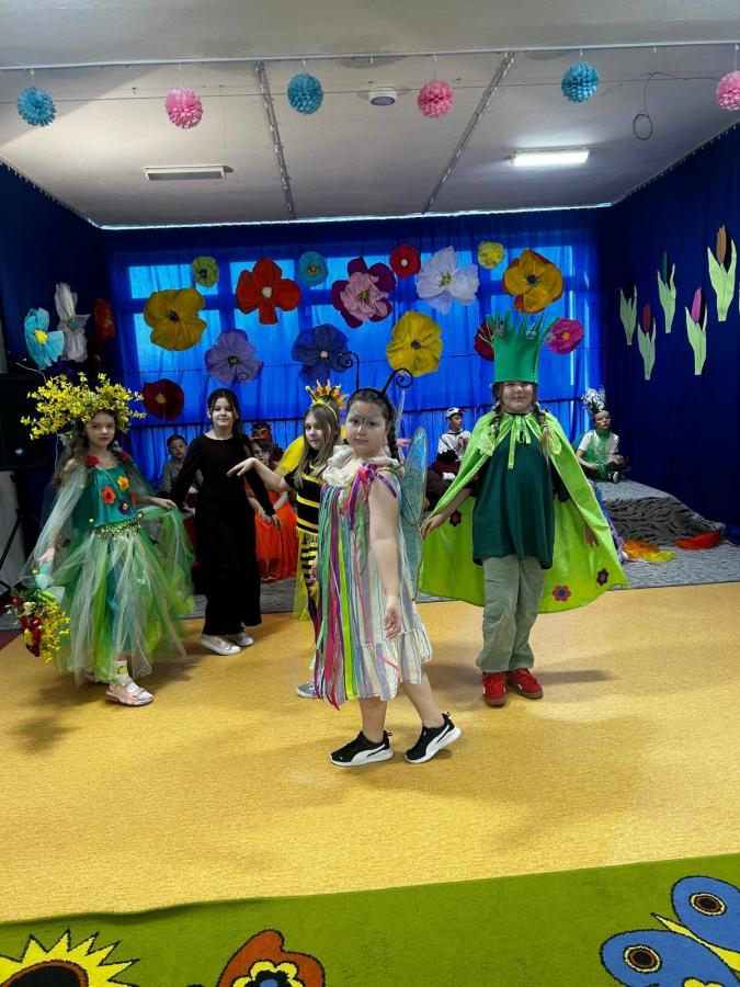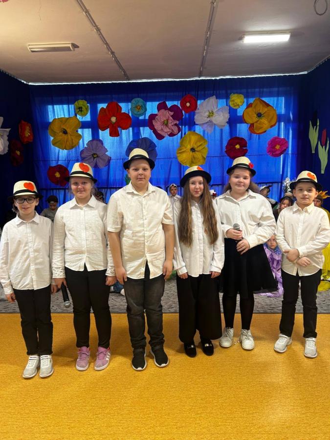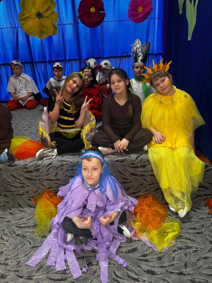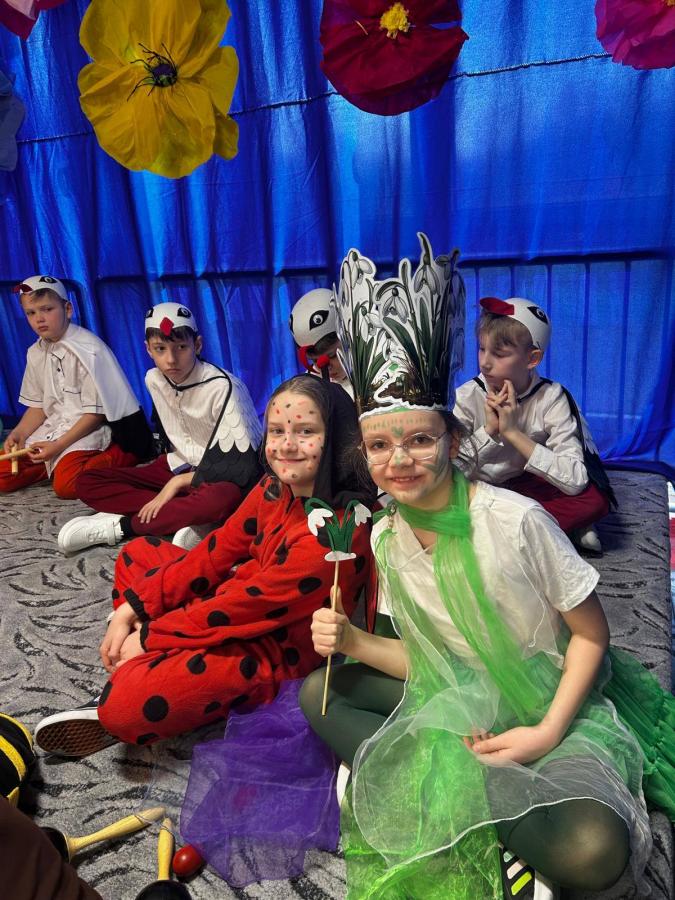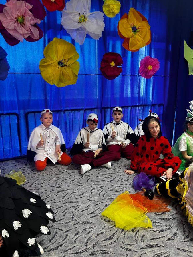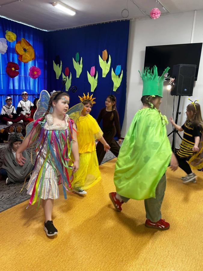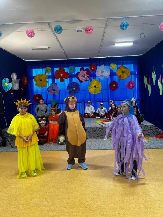 Przedstawienie rozpoczęliśmy „Walcem kwiatów”, który wprowadził wszystkich w wyjątkowy, wiosenny nastrój. Następnie Misiu wraz z innymi zwierzętami budził się ze snu zimowego i wyruszał na poszukiwanie wiosny. W końcu nadeszła – pełna zieleni, kwiatów i radości.