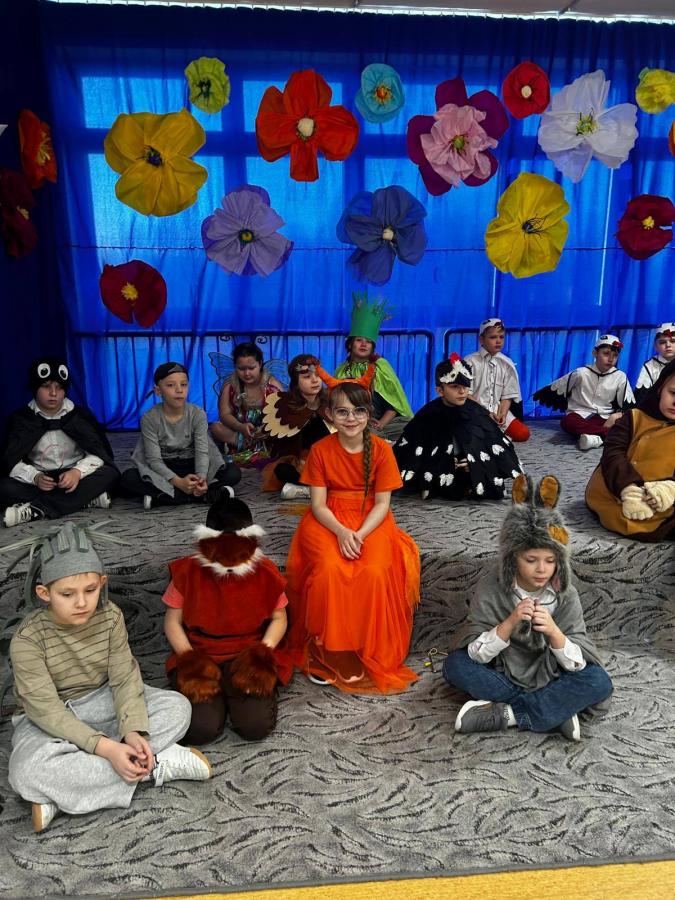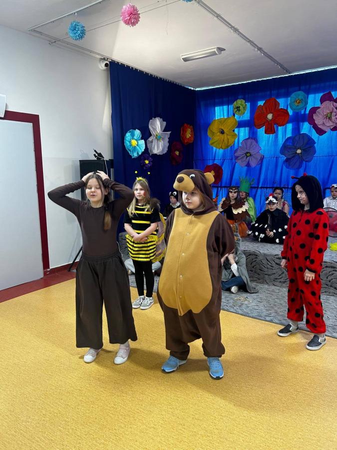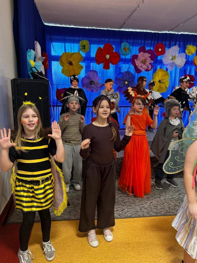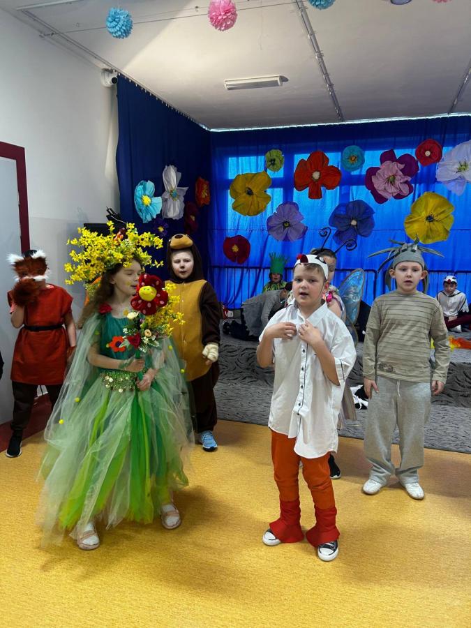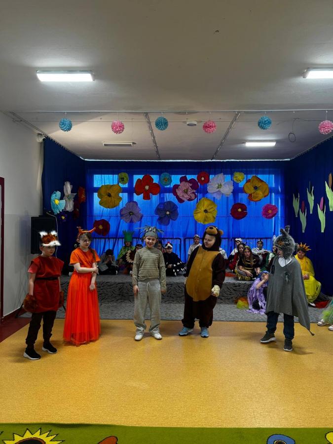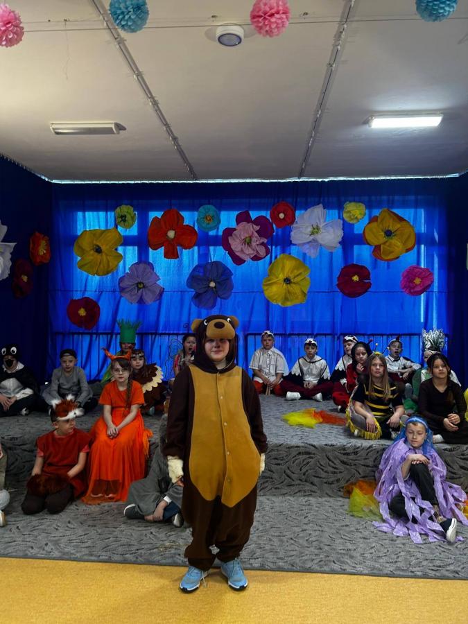 Dziś w naszej szkole radośnie powitaliśmy wiosnę przedstawieniem pt. „O Misiu, który chciał obudzić wiosnę”.