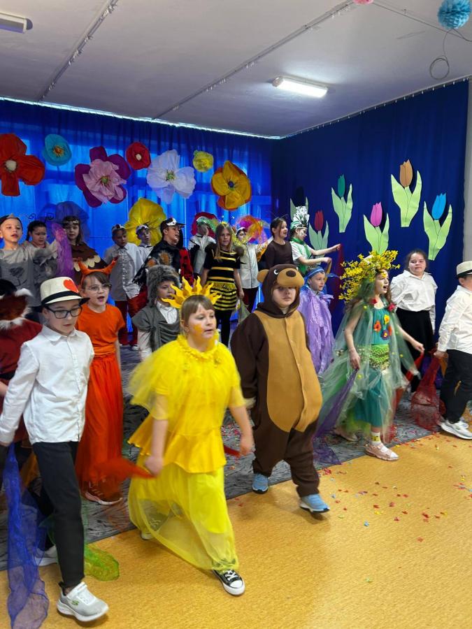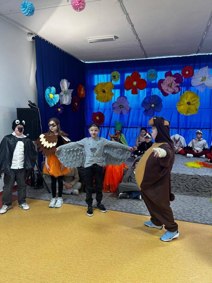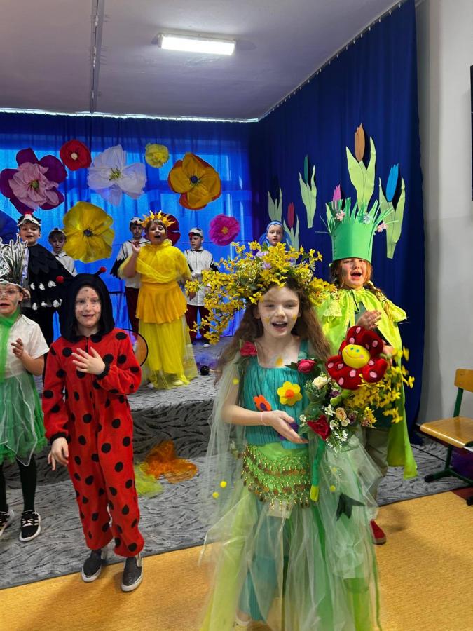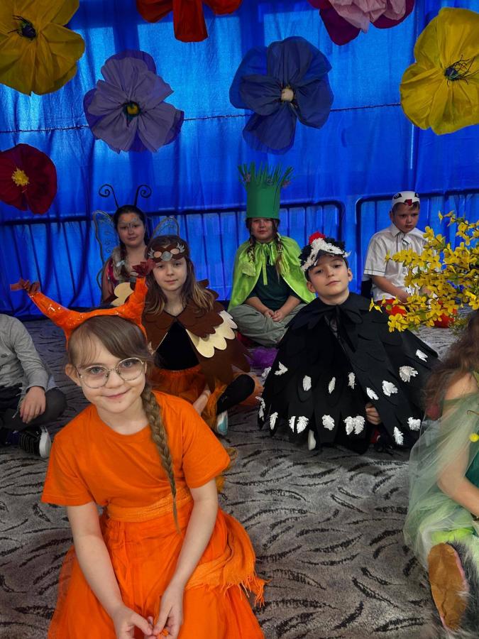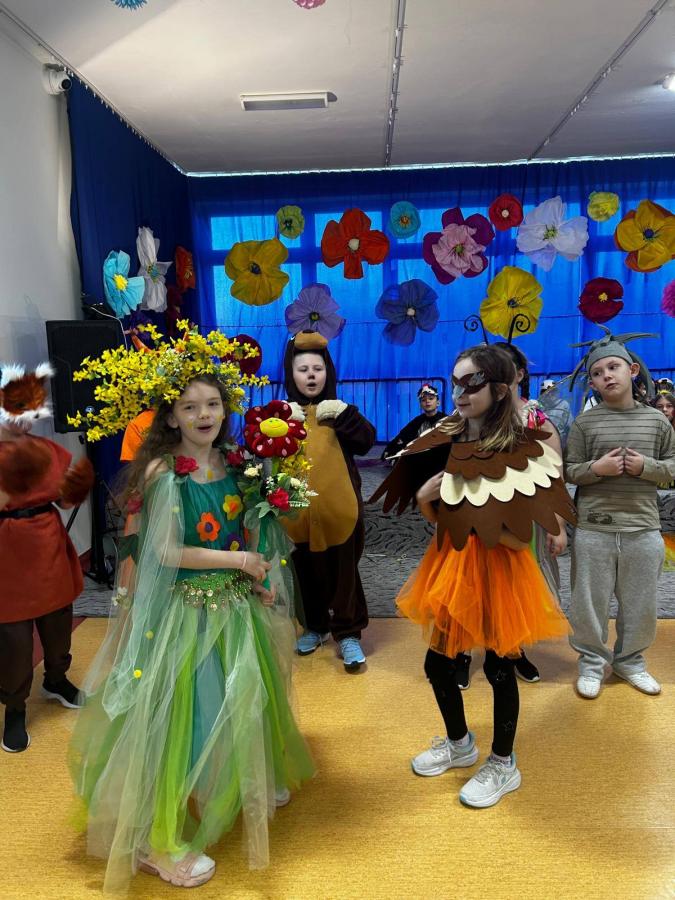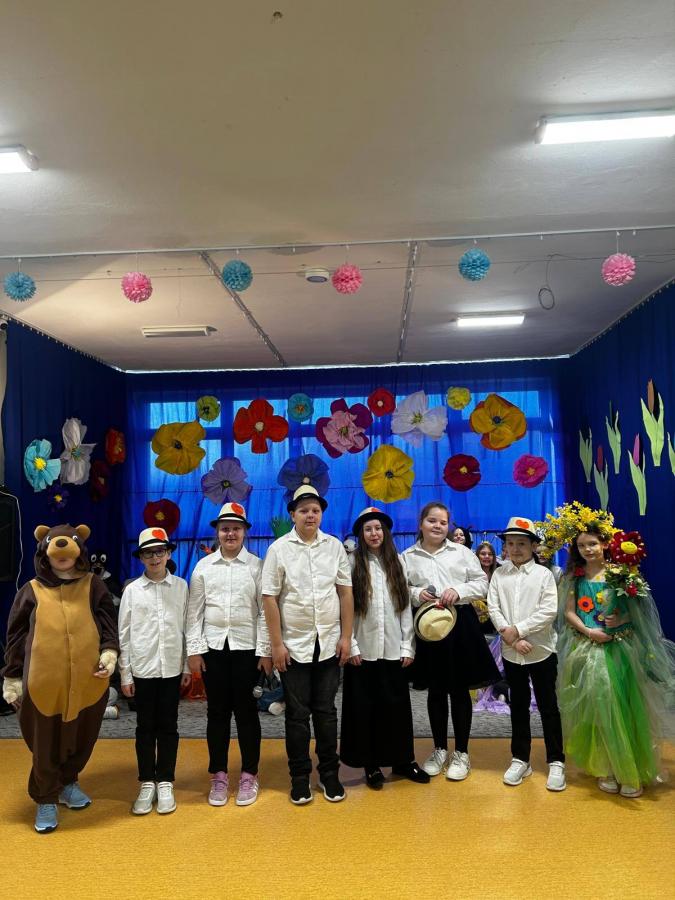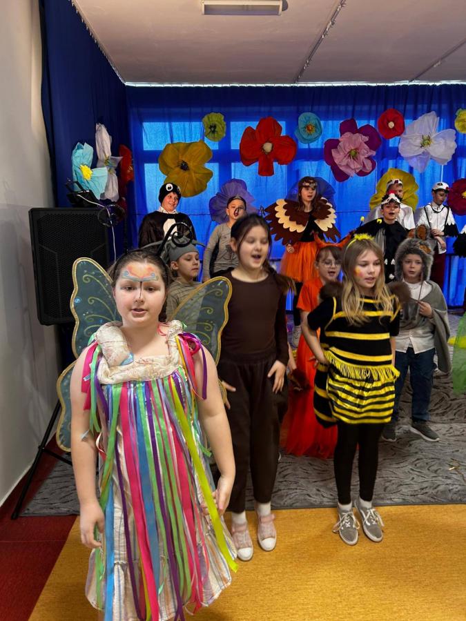 Dziś w naszej szkole radośnie powitaliśmy wiosnę przedstawieniem pt. „O Misiu, który chciał obudzić wiosnę”.
