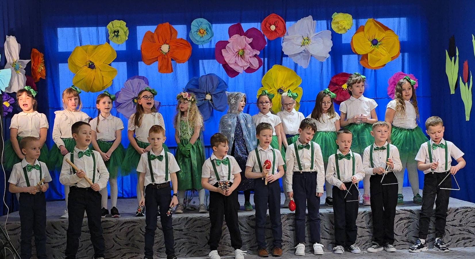Uczniowie klasy pierwszej przygotowali radosne przedstawienie pt. „Witaj Wiosno”.
