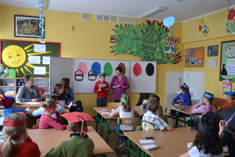 20 marca 2013r. nauczyciel edukacji wczesnoszkolnej pani Małgorzata Błaszak przeprowadziła lekcję otwartą, pokazując jak w niekonwencjonalny sposób można wspomagać wszechstronny i harmonijny rozwój dzieci. Metoda kolorowej ortografii propagowana przez panią Małgosię przynosi zadziwiające efekty w nauce ortografii o czym przekonało się 9 nauczycieli przyglądających się zajęciom. Gratulujemy nauczycielowi pomysłowości, a dzieciom wytrwałości w dążeniu do wyznaczonych celów.
