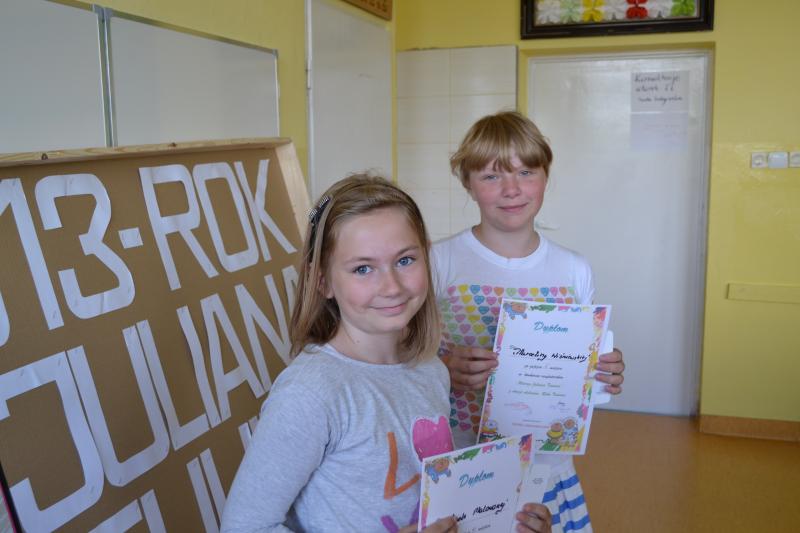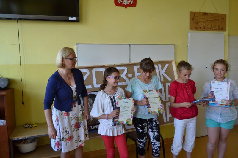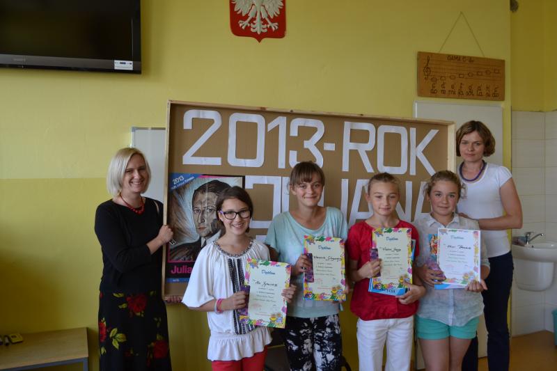 Z okazji obchodów Roku Tuwima w dniu 11 czerwca 2013r. w naszej szkole odbył się konkurs recytatorski „Wiersze Juliana Tuwima” zorganizowany przez panie Beatę Falgowską i Renatę Afeltowicz z biblioteki szkolnej. Jury ( w składzie 2 nauczycieli i 4 uczniów) miało trudny wybór, ponieważ wszyscy się bardzo dobrze zinterpretowali wybrane wiersze. Różnice między pierwszymi miejscami były niewielkie (rzędu 1 p.)