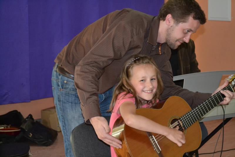 Dzieci z klas edukacji wczesnoszkolnej miały okazję uczestniczyć w zajęciach muzycznych, których głównym bohaterem była gitara. Wspólna zabawa oraz utwory zagrane przez muzyków stanowiły dobrą lekcję mającą na celu pokazanie co można wyczarować na sześciu strunach.
