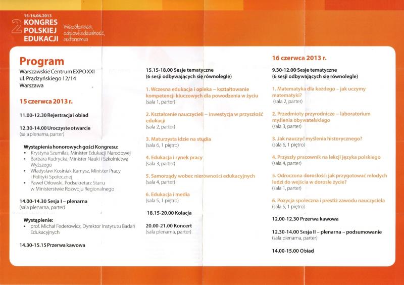 Dyrekcja naszej szkoły uczestniczyła w dwudniowych obradach środowiska oświatowego, którym przyświecało hasło „Współpraca, odpowiedzialność, autonomia”. W Kongresie wzięło udział ponad 1,3 tysiąca nauczycieli z całego kraju. Byli także samorządowcy, naukowcy, przedstawiciele rozmaitych instytucji i stowarzyszeń związanych z oświatą i szkolnictwem wyższym. Jednym z głównych problemów, które poruszano była kwestia odroczonej dorosłości. Uczestnictwo w wielu interesujących wykładach, możliwość udziału w dyskusji to ciekawe i twórcze doświadczenie dla dyrekcji szkoły.