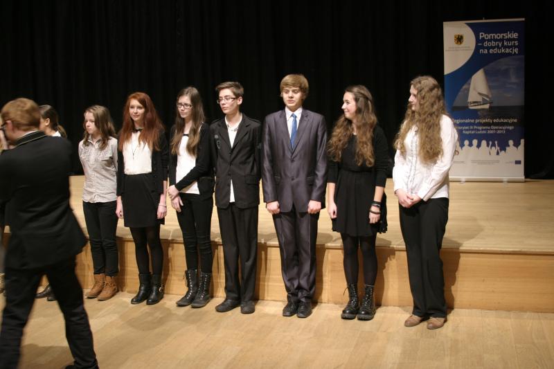 W dniu 10 grudnia 2013 r. w Gdańskiej Filharmonii Bałtyckiej odbyła się uroczysta gala wręczenia stypendium w ramach projektu „Pomorskie – dobry kurs na edukację. Program pomocy stypendialnej dla uczniów szczególnie uzdolnionych z obszaru województwa pomorskiego”. Obecni byli przedstawiciele samorządów gminnych i powiatowych z naszego województwa, rektorzy gdańskich uczelni wyższych Uniwersytetu Gdańskiego i Politechniki Gdańskiej, przedstawiciele Rady Miasta Gdańska i Urzędu Marszałkowskiego. Dla uatrakcyjnienia gali wystąpił chór VI Liceum Ogólnokształcącego w Gdańsku.