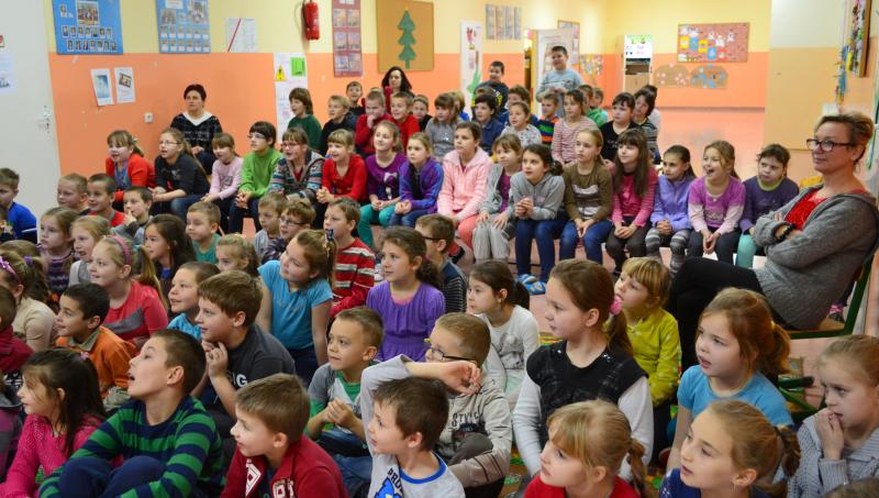 Dzieci edukacji wczsnoszkolnej wzięły udział w spektaklu profilaktyczno edukacyjnym pt.: Skrzaty ze starej szafy, przygotowanym przez teatr Moralitet z Krakowa.