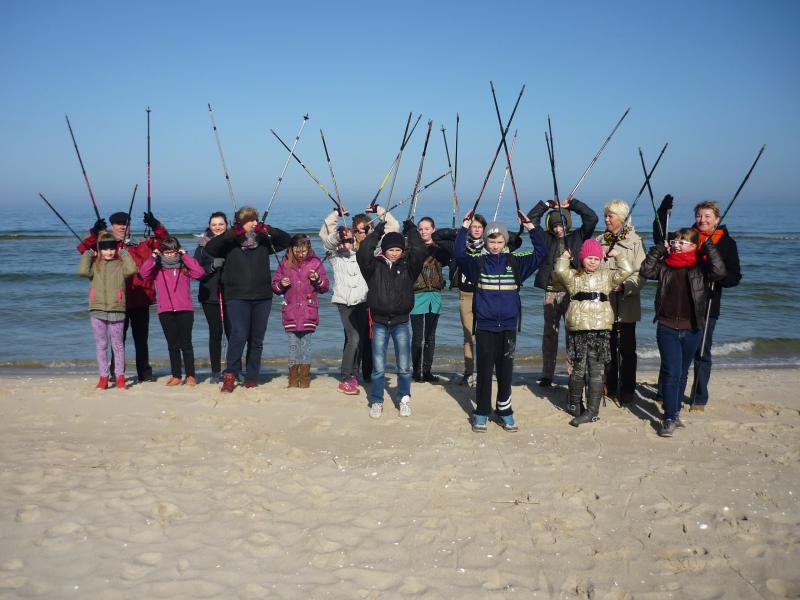8 marca 2014r. w sobotę odbył się marsz z kijkami Nordic Walking w ramach projektu „Danone-podziel się posiłkiem”, do którego przystąpił Zespół Szkół w Sztutowie. Dzięki współpracy ze świetlicami środowiskowymi z naszej gminy w zajęciach z instruktorem NW wzięły udział dzieci ze świetlic ze Sztutowa, Łaszki i Grochowa Trzeciego. Podczas zajęć wspólnie z dziećmi świetnie bawiła się stała grupa dorosłych kijkarzy ze Sztutowa. Zajęcia obfitujące w gry i zabawy z wykorzystaniem kijków połączone były z marszem po lesie i plaży na dystansie 7 km. Wszyscy lekko zmęczeni ale zadowoleni pokonali trasę i zapowiedzieli swoje uczestnictwo w kolejnych zajęciach, które odbędą się w kwietniu.