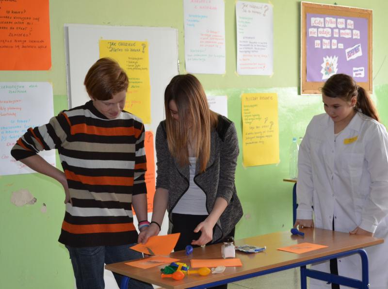 28 marca odbył się pokaz doświadczeń dla gimnazjalistów. Poprowadzili go: Amelia Gawin, Natalia Madej, Angelika Krzyżanowska, Nikola Sztygowska, Maria Burczy, Wiktoria Łaczyńska i Katarzyna Owsińka. Uczniów przygotowała p. Anna Duchalska.