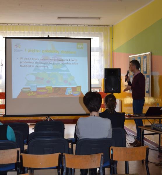 Marcin Raszewski przedstawił główne zasady żywienia dzieci i młodzieży. Mówił o największych problemach związanych z koniecznością propagowania zdrowego trybu życia – potrzebie ruchu i dobrze zbilansowanej diety. Szczególną uwagę zwrócił na ilość i jakość posiłków, które przygotowujemy dla dzieci.
