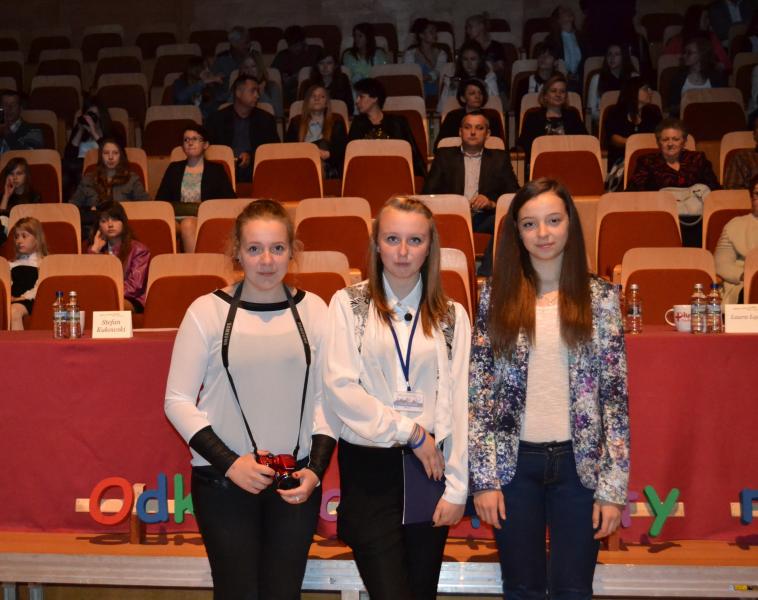 Na gali finałowej Kamilę wspierały koleżanki: Kasia Bielińska i Natalka Madej oraz opiekun prowadzący uczennicę pani Bożena Nowak.