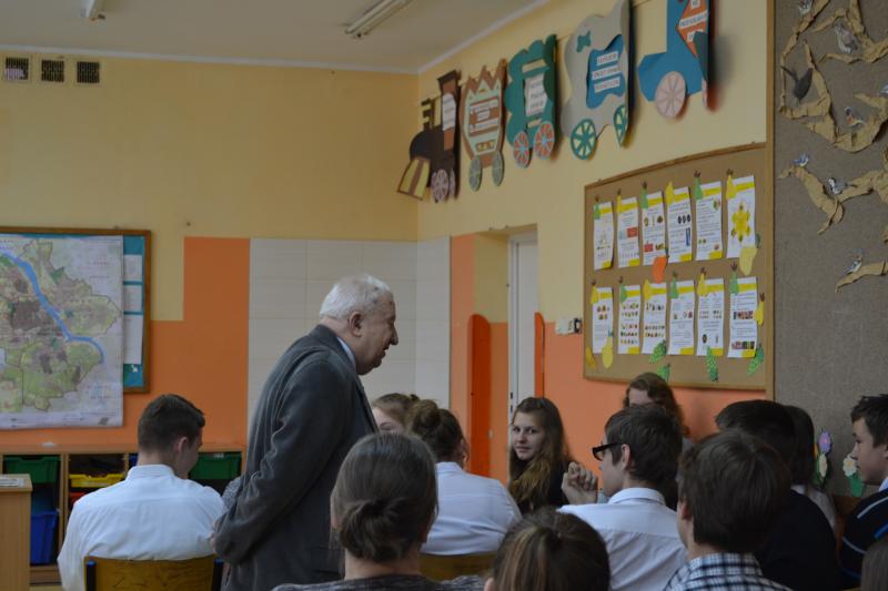 Pan Łubieński został poproszony o przybliżenie młodzieży historii swojego udziału w powstaniu warszawskim. Wspominał kolegów, z których większość zginęła w powstaniu. Mówił o tragicznym końcu powstania i wyjściu wraz z cywilami co wiązało się ze skierowaniem do Stutthofu.