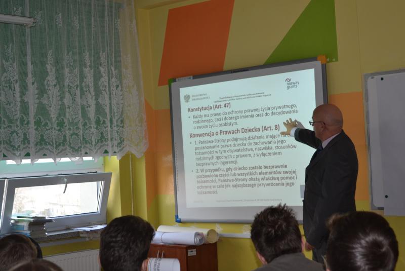 Uczniowie poznali konkretne zapisy prawa, które chronią ich prawa oraz prawa innych użytkowników Internetu. Wykładowca – prawnik – przedstawił odpowiednie artykuły kodeksu cywilnego, konstytucji, Konwencji Praw Dziecka, kodeksu karnego oraz kodeksu wykroczeń. Młodzi ludzie poznali również pojęcia tj. trollowanie, flaming, stalking, phising, spooting, grooming. Dowiedzieli się jak można zadbać o swoje prawa i gdzie mogą szukać pomocy. Uczestnicy zajęć otrzymali materiały edukacyjne przygotowane przez specjalistów.