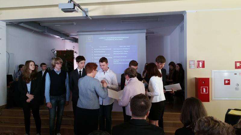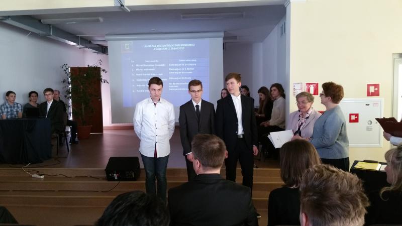 W piątek 17 kwietnia 2015 odbyła się uroczystość wręczenia laureatom zaświadczeń. Odebrali je z rąk Pomorskiego Kuratora Oświaty w I Akademickim LO w Gdyni.