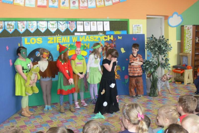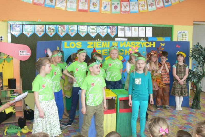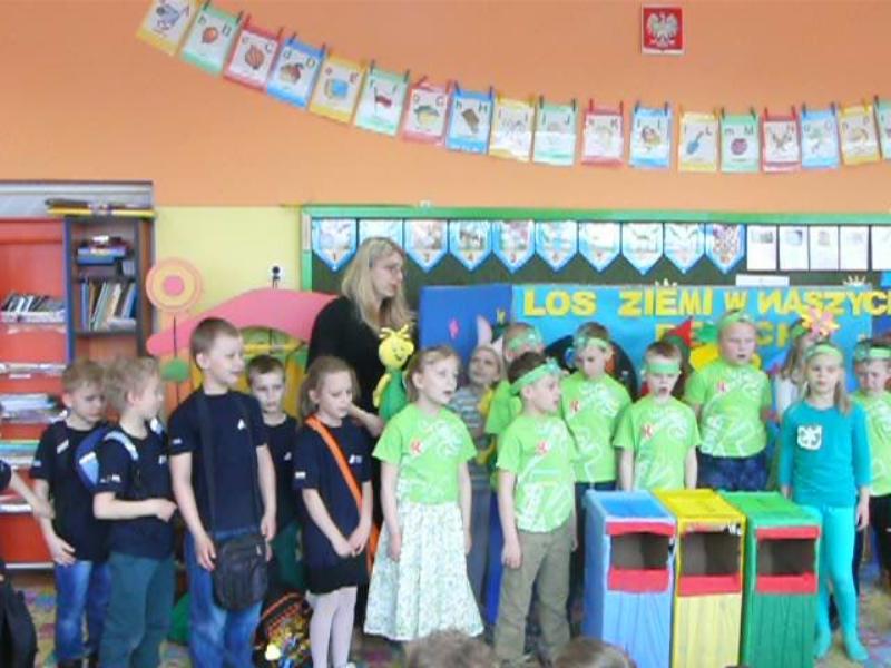Z okazji Dnia Ziemi, klasa 1b wraz z wychowawczynią W.J przygotowała przedstawienie „Los Ziemi w naszych rękach”. Promowaliśmy segregację śmieci i uczyliśmy jak robić to prawidłowo. Pokazaliśmy również jak właściwie zachowywać się w lesie.